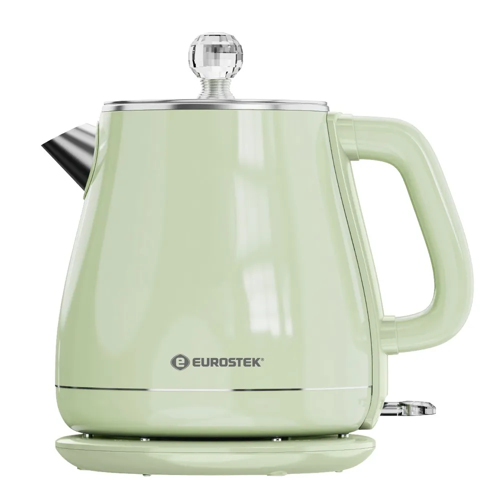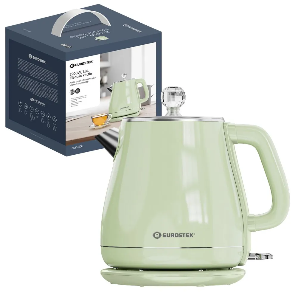 Технология двухслойного корпуса COOL TOUCH, дисковый нагревательный элемент, световая индикация работы, вращения чайника на подставке на 360, автоматическое отключение при закипании и при недостаточном количестве воды.
