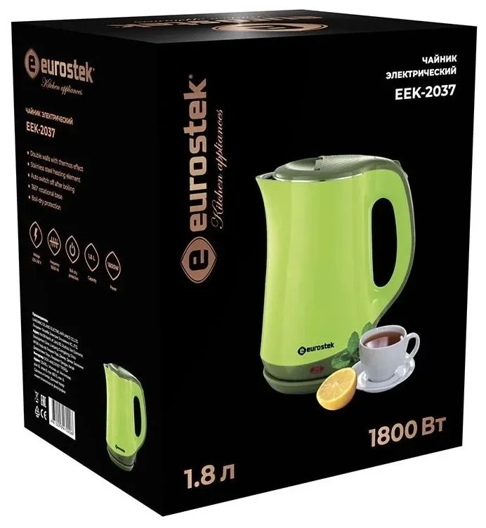 Конструкция чайника: Индикатор уровня воды, Светоиндикатор работы, Фильтр от накипи, Двухслойный корпус