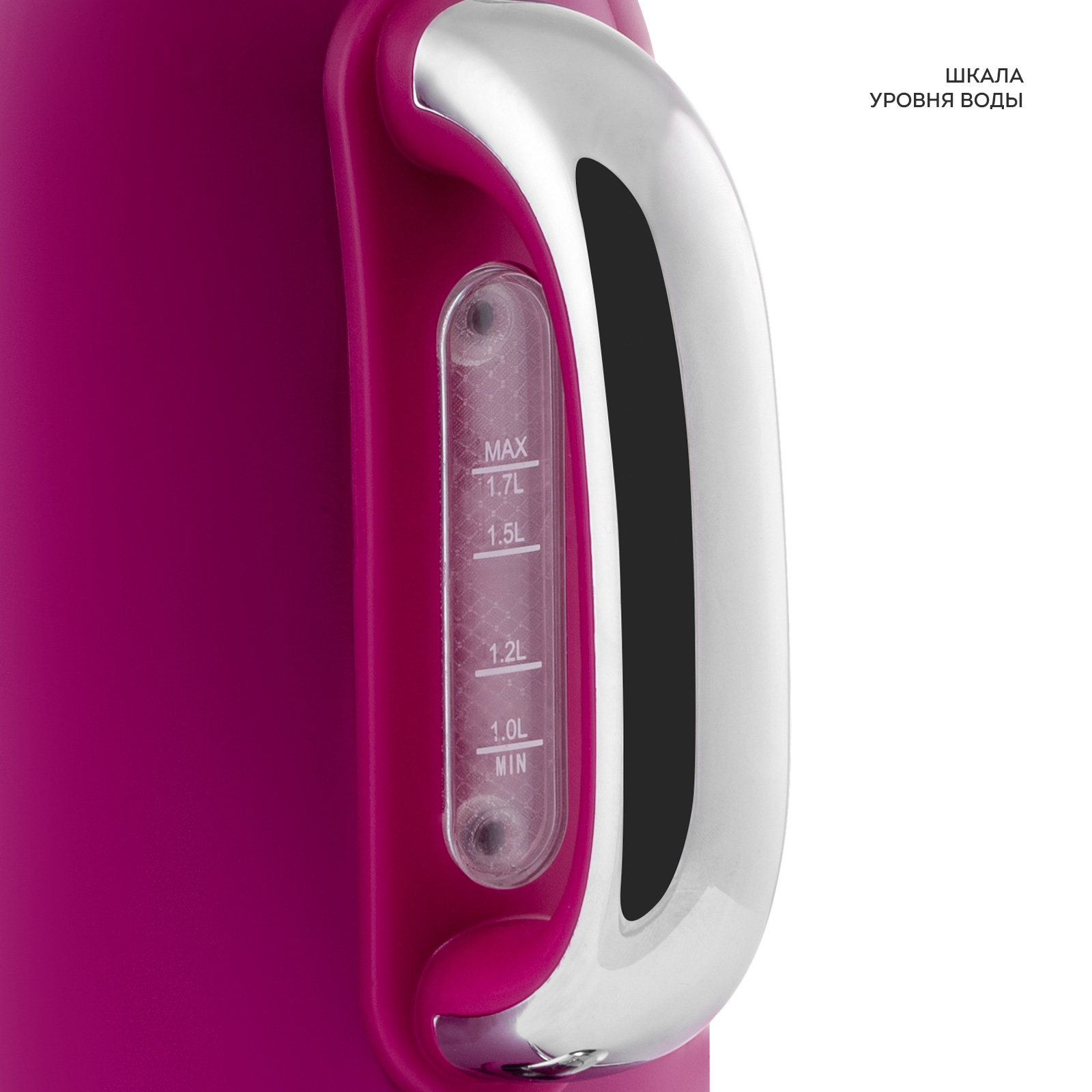 За один раз в чайнике можно вскипятить до 1,7 л воды. Этого хватит, чтобы приготовить горячие напитки на большую семью. Мерная шкала позволяет легко следить за уровнем воды.