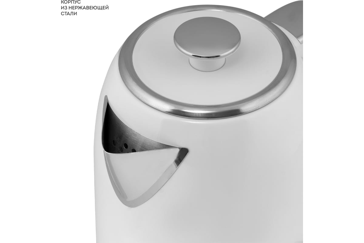 Корпус чайника из нержавеющей стали исключает появление посторонних запахов и привкуса, а также обеспечивает его долговечность.