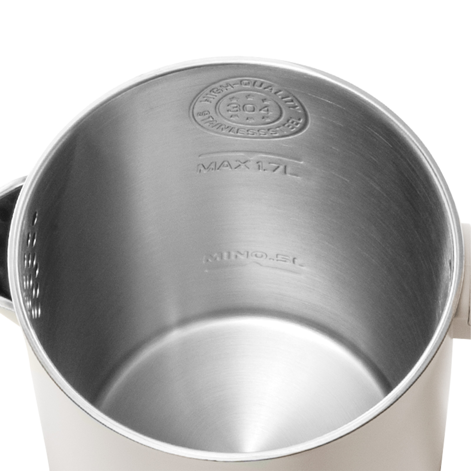 Двойная стенка из нержавеющей стали AISI 304 и пластика не только сохраняет тепло, но и предотвращает нагревание корпуса, что делает использование чайника безопасным даже в семье с маленькими детьми. Съемная крышка упрощает наполнение и уход за прибором, а отсек для хранения сетевого шнура позволяет поддерживать порядок на кухне.