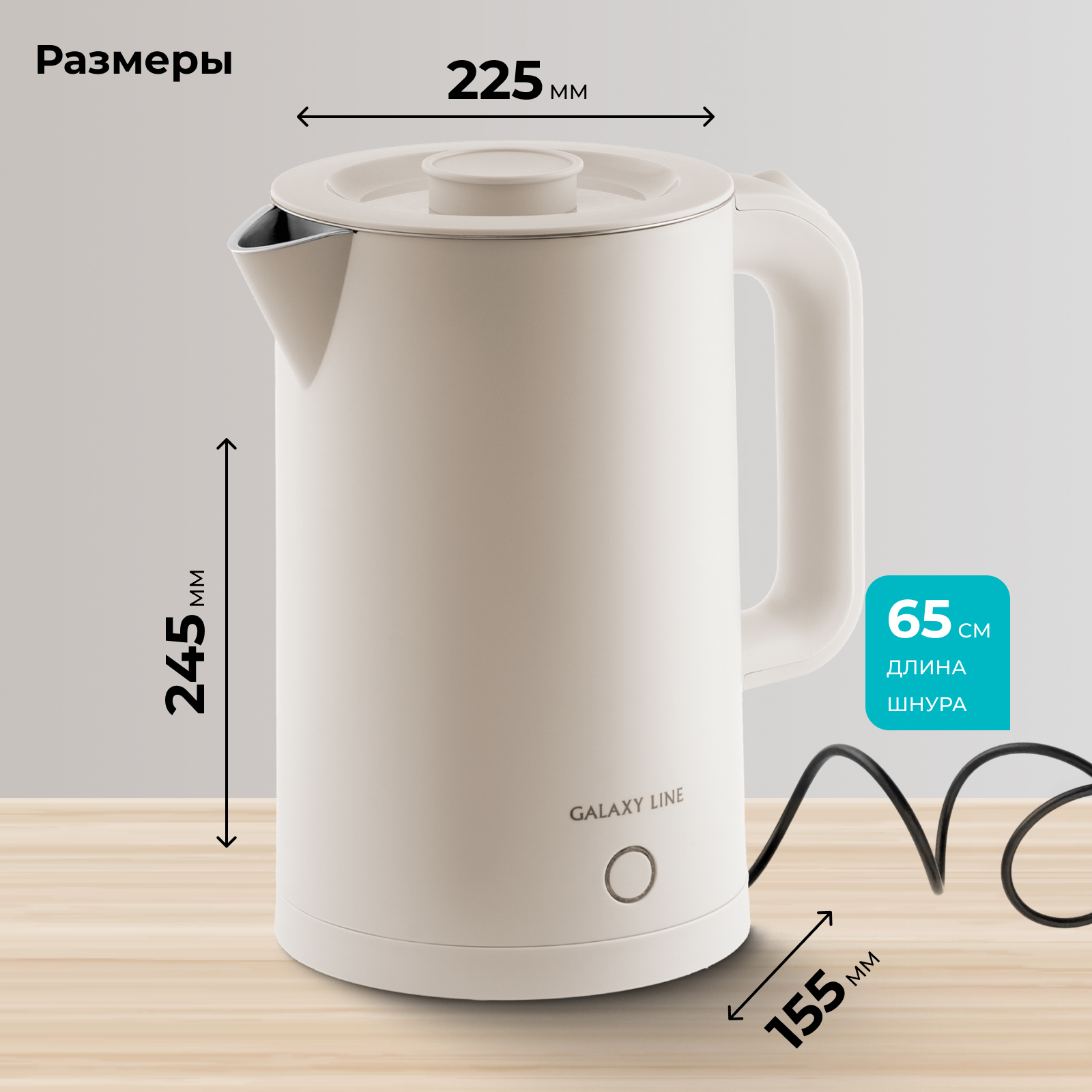 Электрический чайник GALAXY LINE GL0362 в бежевом цвете – это сочетание высокой мощности, стильного дизайна и безопасного использования. Этот чайник мощностью 2200 Вт быстро нагреет воду для вашего утреннего чая или кофе. Объём 1,7 литра идеально подходит для большой семьи или компании гостей.