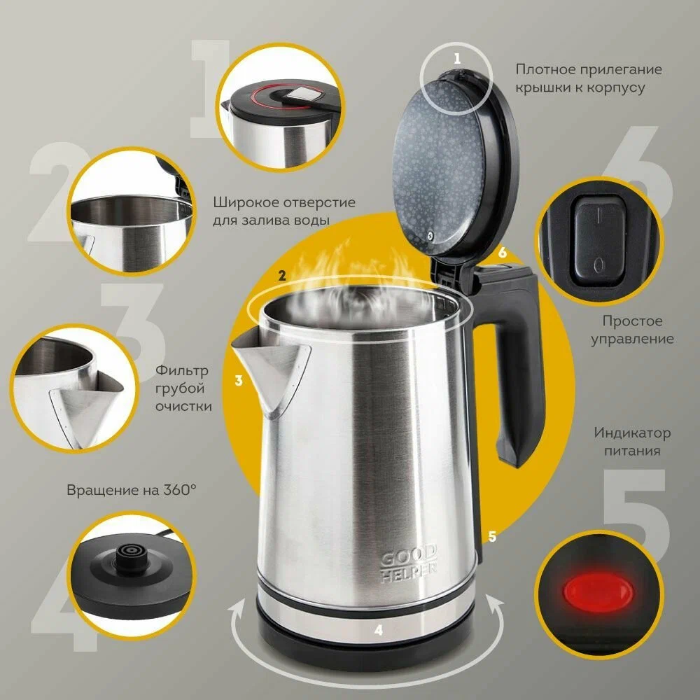 корпус — нержавеющая сталь марки SS201; ручка и крышка ABS-пластик; защита от перегрева