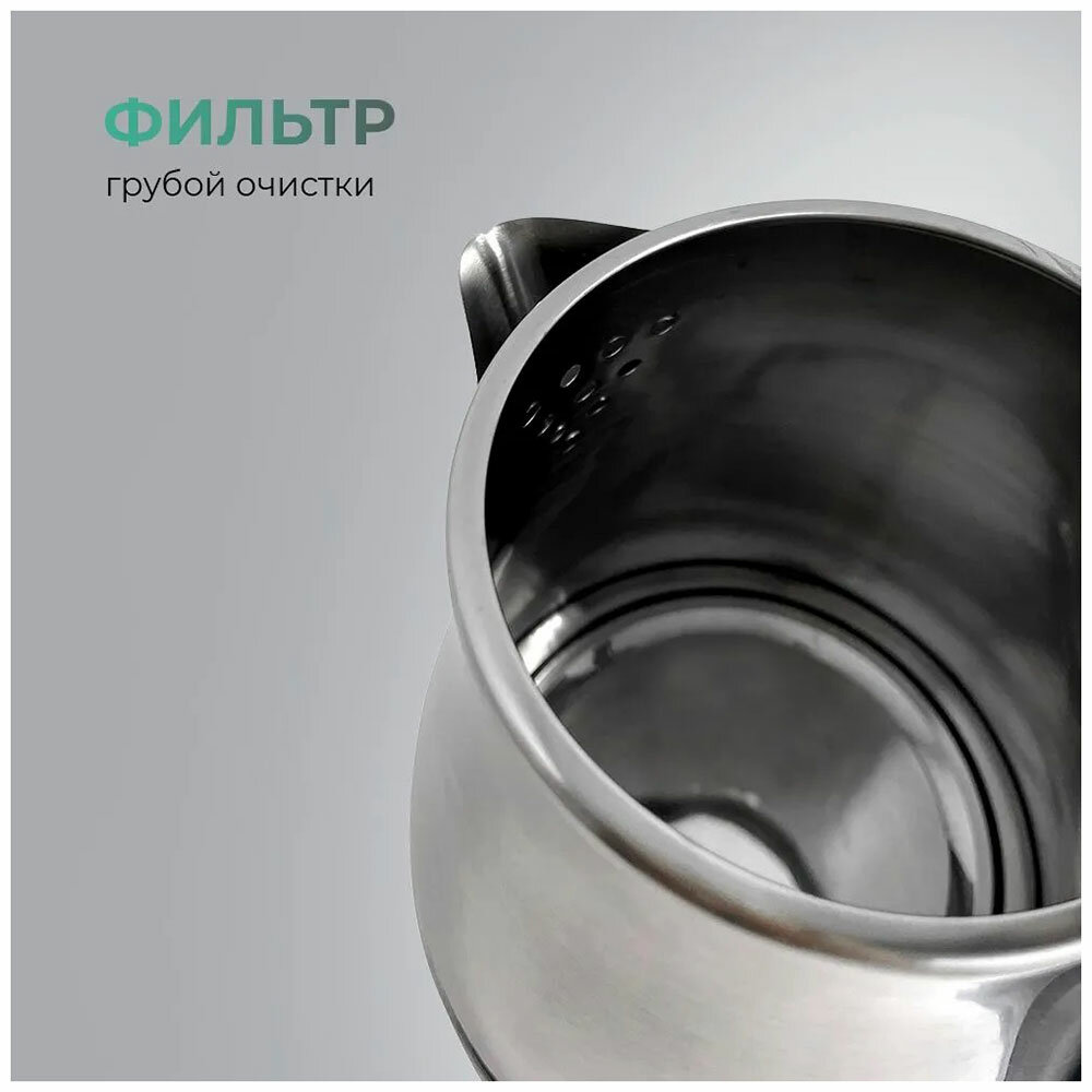 Чайник оснащён мощным и эффективным нагревательным элементом, который позволяет быстро довести воду до нужной температуры. Вы сможете наслаждаться тёплыми напитками всего за несколько минут. Также стоит отметить наличие автоматического отключения при закипании, что делает использование устройства безопасным и надёжным.