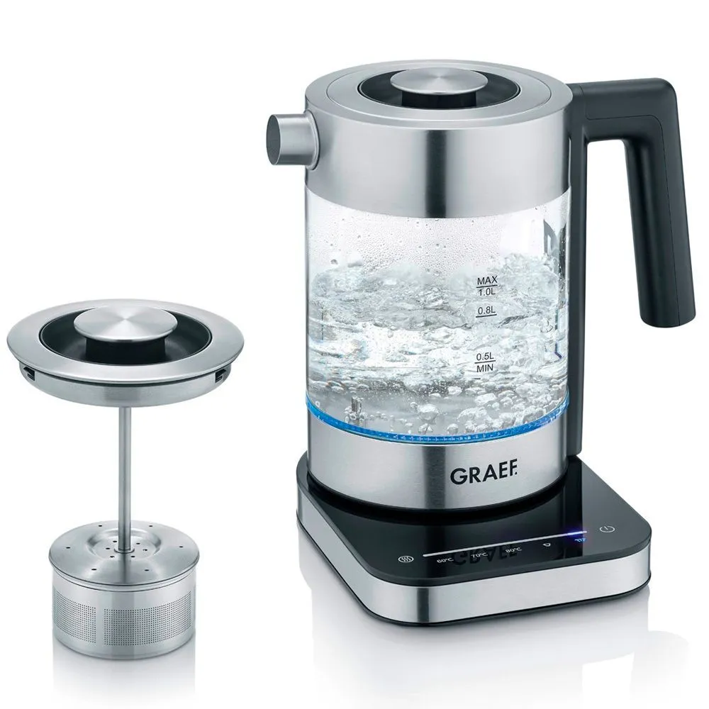 Конструкция чайника: Вращение подставки на 360°, Двухслойный корпус, Фильтр от накипи, Дисплей, Заварочный чайник