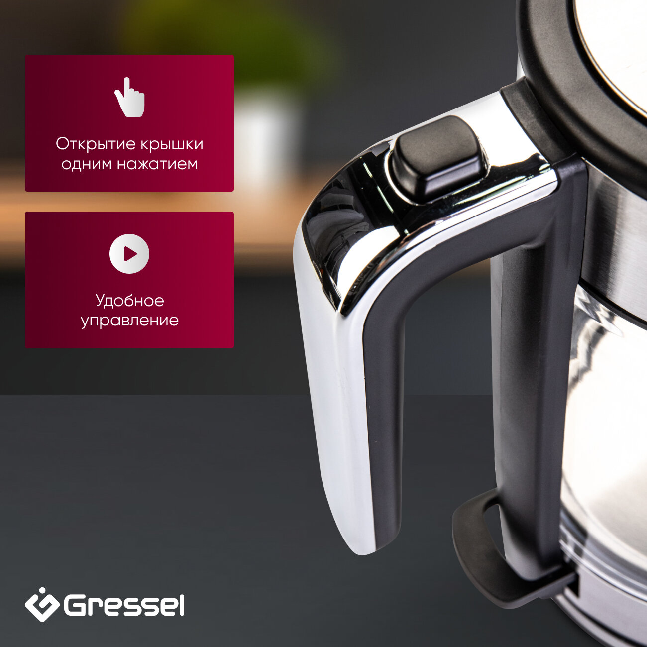 Электрический чайник Gressel GRK-1105 обладает всеми необходимыми функциями, обеспечивая комфортное использование.