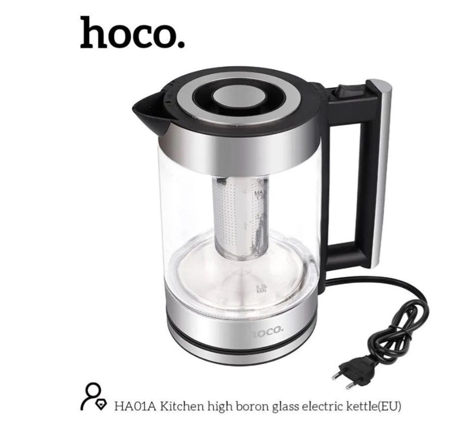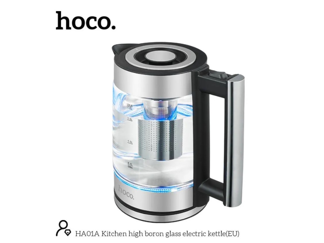 HOCO HA01A представляет собой современный электрический чайник с объёмом 1,8 литра. Такой вместимости хватает для наполнения водой 6 чашек (до 330 мл), что очень удобно, если Вы готовите горячие напитки на большую компанию.