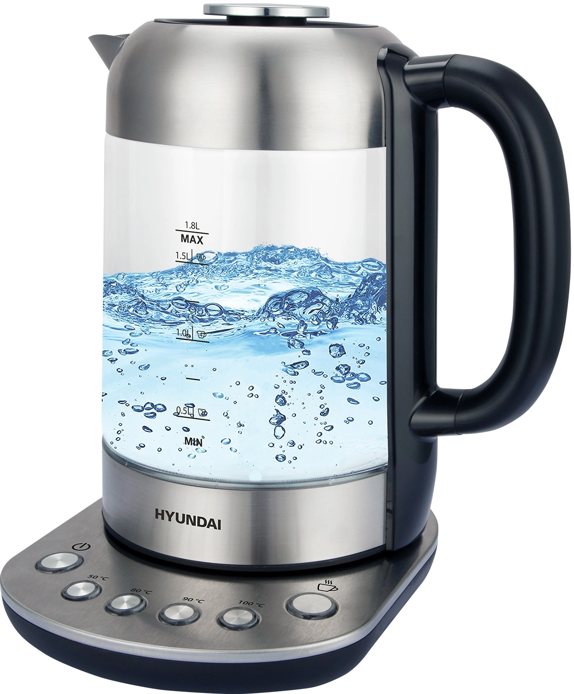 Стильный стеклянный чайник с металлическими вставками на базе, с регулировкой температуры и качественной контрольной группой. Украшение любого интерьера и функциональный прибор на вашей кухне.