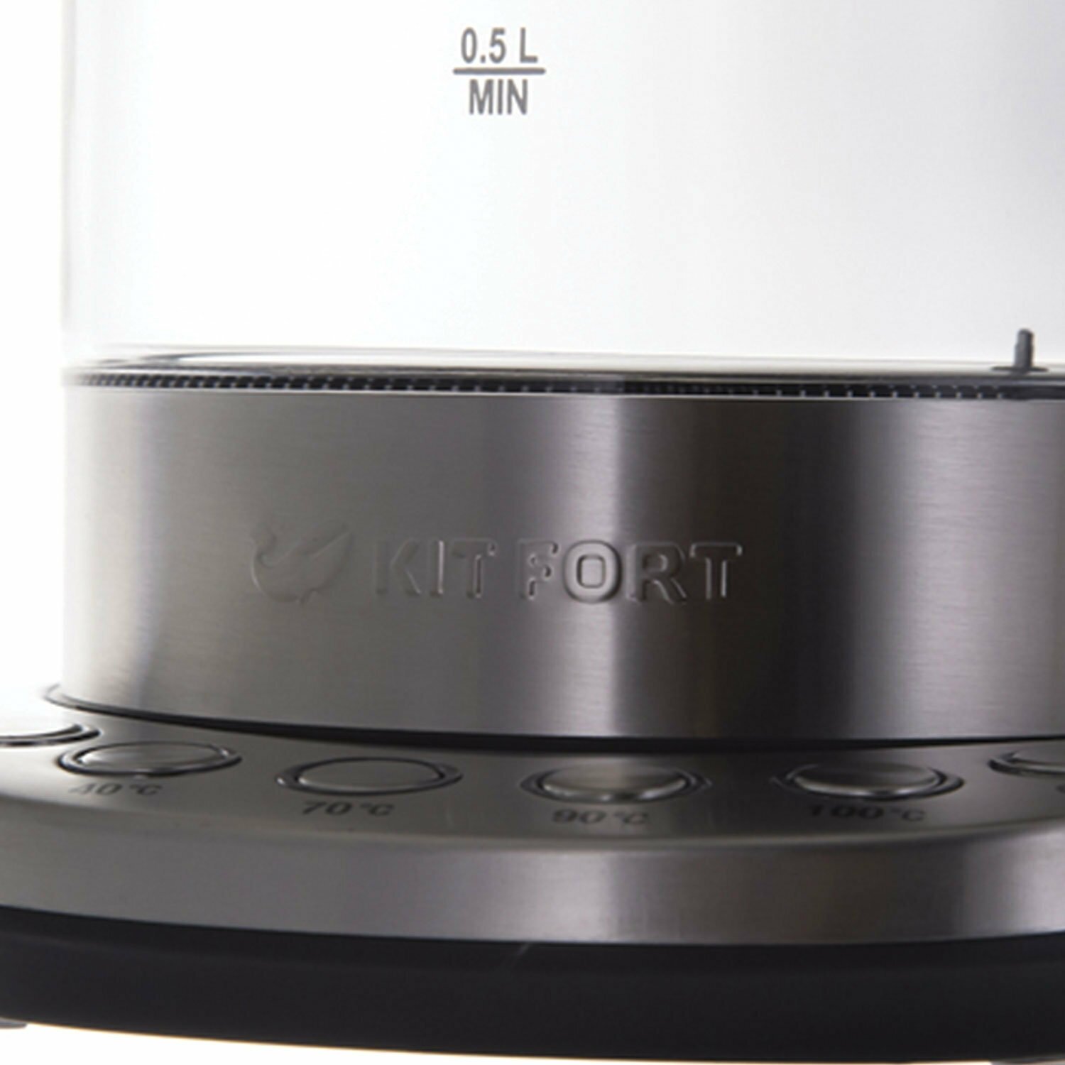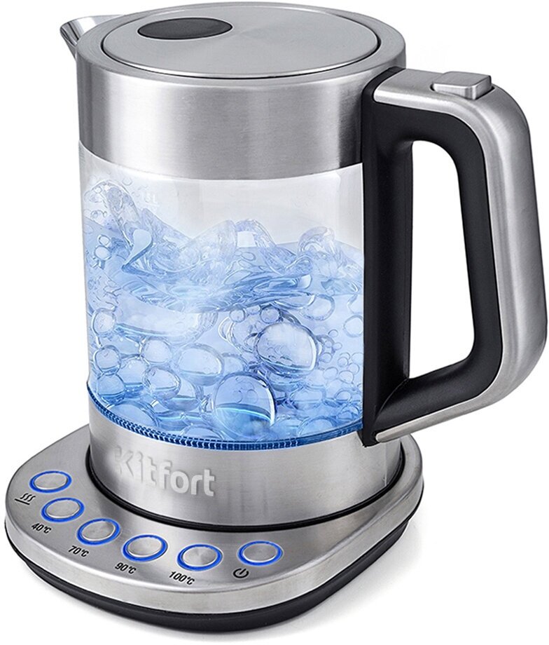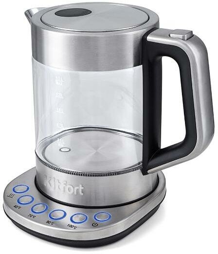 Электрический чайник с терморегулятором Кіtfort КТ-616 может не только вскипятить воду, но и нагреть ее до температуры 40, 70 и 90°С.