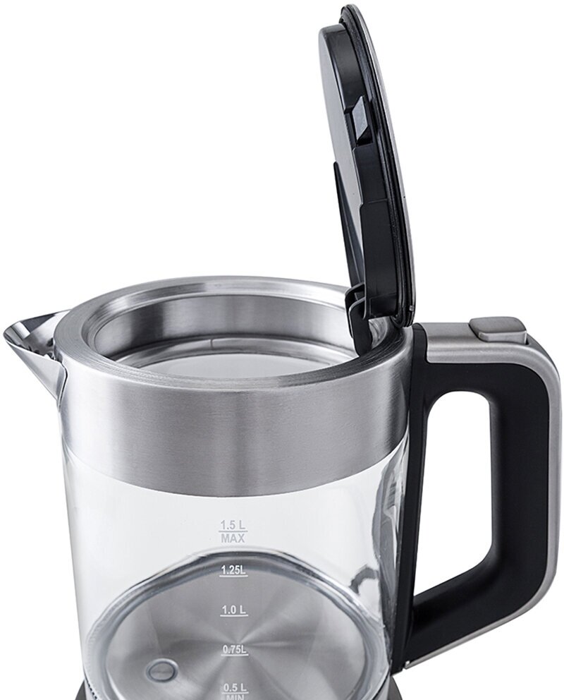 Чайник автоматически отключается при закипании и при снятии его с подставки, имеет защиту от перегрева и защиту от включения без воды.