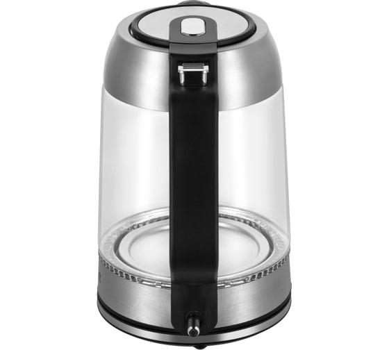 Корпус чайника выполнен из стекла.Ручка чайника сделана из пластика, она не нагревается и удобно лежит в руке. Кнопка включения расположена под ручкой. При включении загорается индикатор, встроенный в корпус.