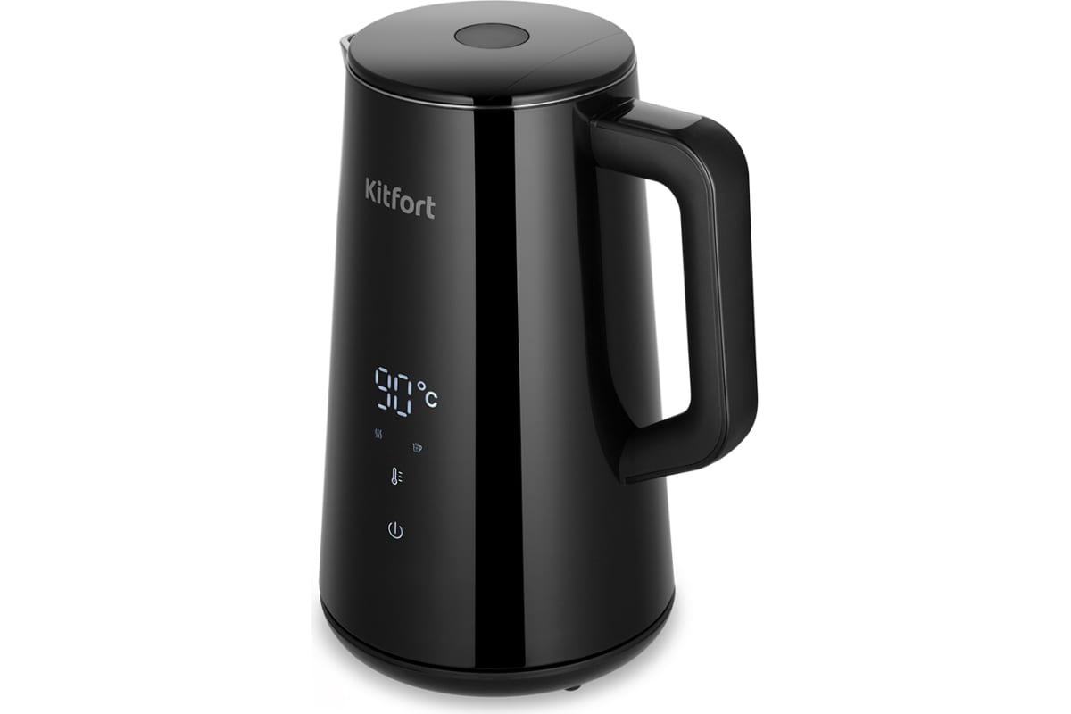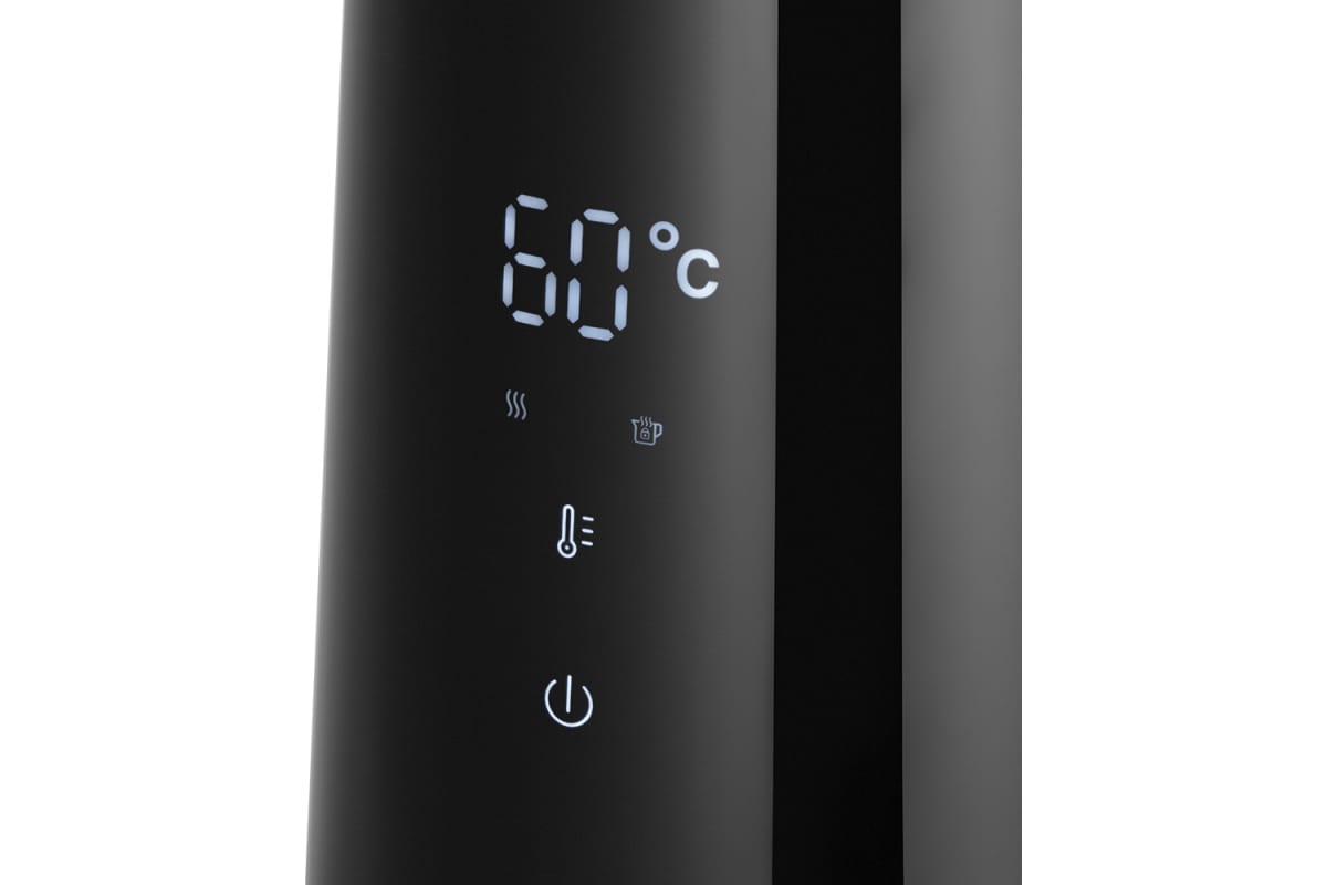 5 температурных режимов. На корпусе расположена панель управления и LED-дисплей. Чайник KT-6186 может не только вскипятить воду, но и нагреть ее до температур: 40, 60, 85 и 90 °С для различных сортов чая. А температура 40 °С удобна для приготовления детского питания.