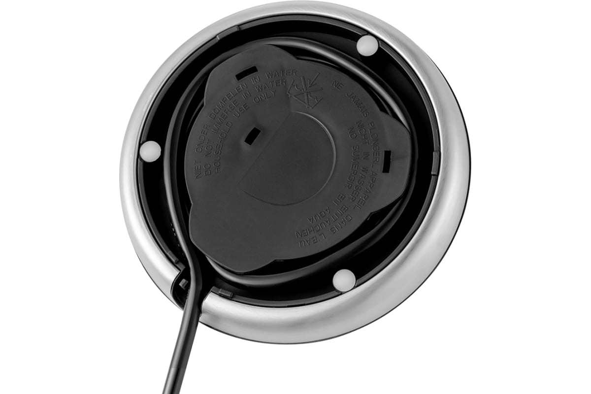 Без лишних проводов. Подставка с центральным контактом дает возможность располагать на ней чайник в любом положении, обеспечивая вращение на 360°. Снизу имеется отсек для хранения шнура, в который можно смотать излишки шнура электропитания, чтобы он не мешал на столе.