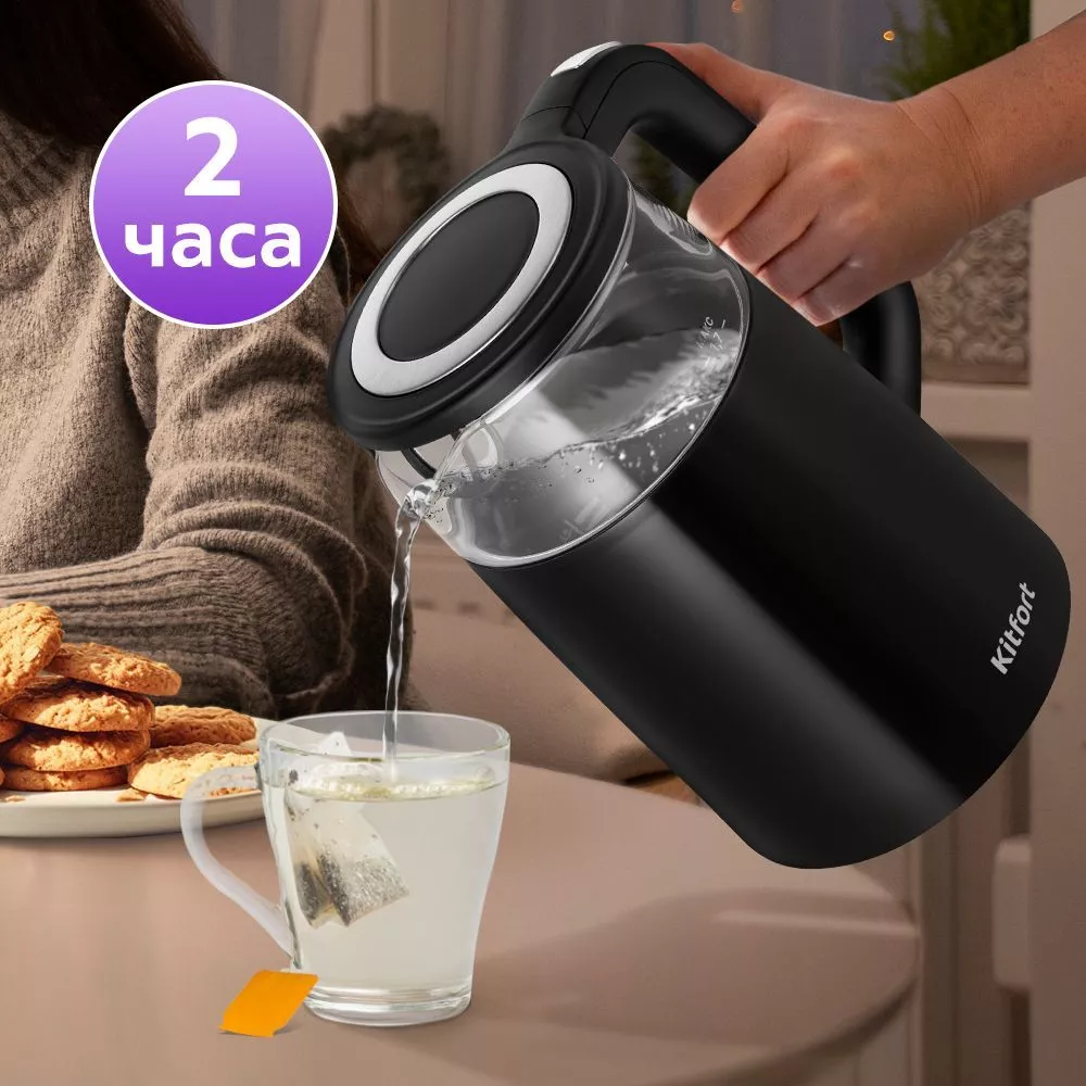 Электрический чайник Kitfort КТ-6611 может не только вскипятить воду, но и нагреть её до температуры от 40 до 95°C. Ёмкость чайника 1,7 литров: этого хватит, чтобы приготовить горячие напитки на большую семью.