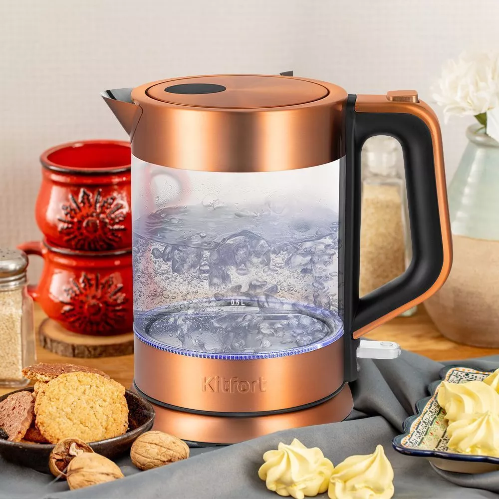 Электрический чайник Kitfort КТ-6656 предназначен для кипячения воды дома, в офисе, на даче. Ёмкость чайника составляет 1,5 л. Необычный дизайн чайника дополнит любой интерьер.