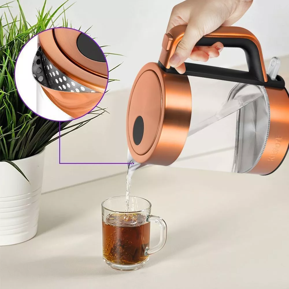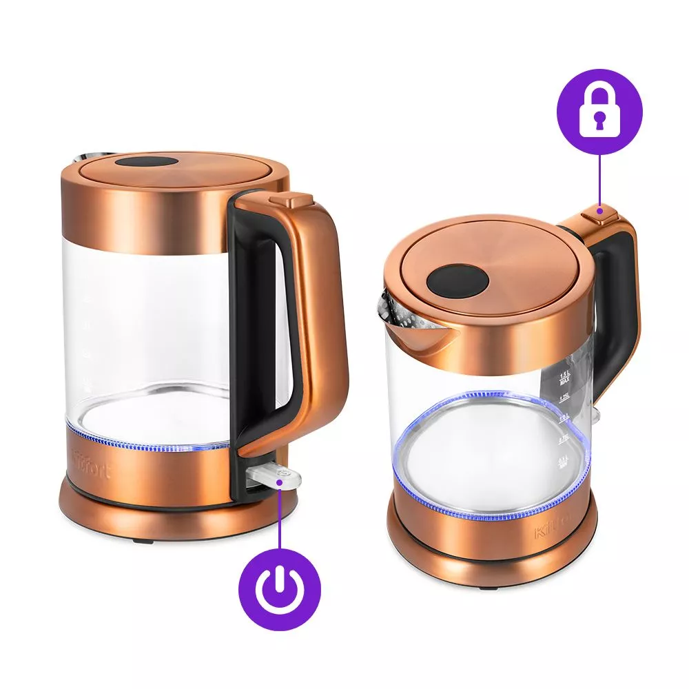 КТ-6656 автоматически отключается при закипании, имеет защиту от перегрева и от включения без воды. Чайник оснащён контроллером Strix, который устраняет риски короткого замыкания и возгорания прибора.