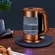 При включении чайника по периметру дна загорается синяя подсветка, которая является индикатором работы и одновременно красиво подсвечивает кипящую воду.