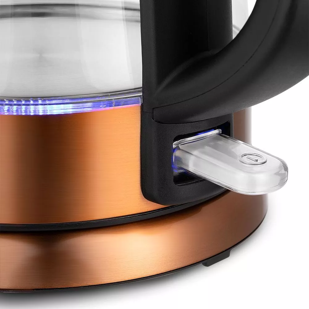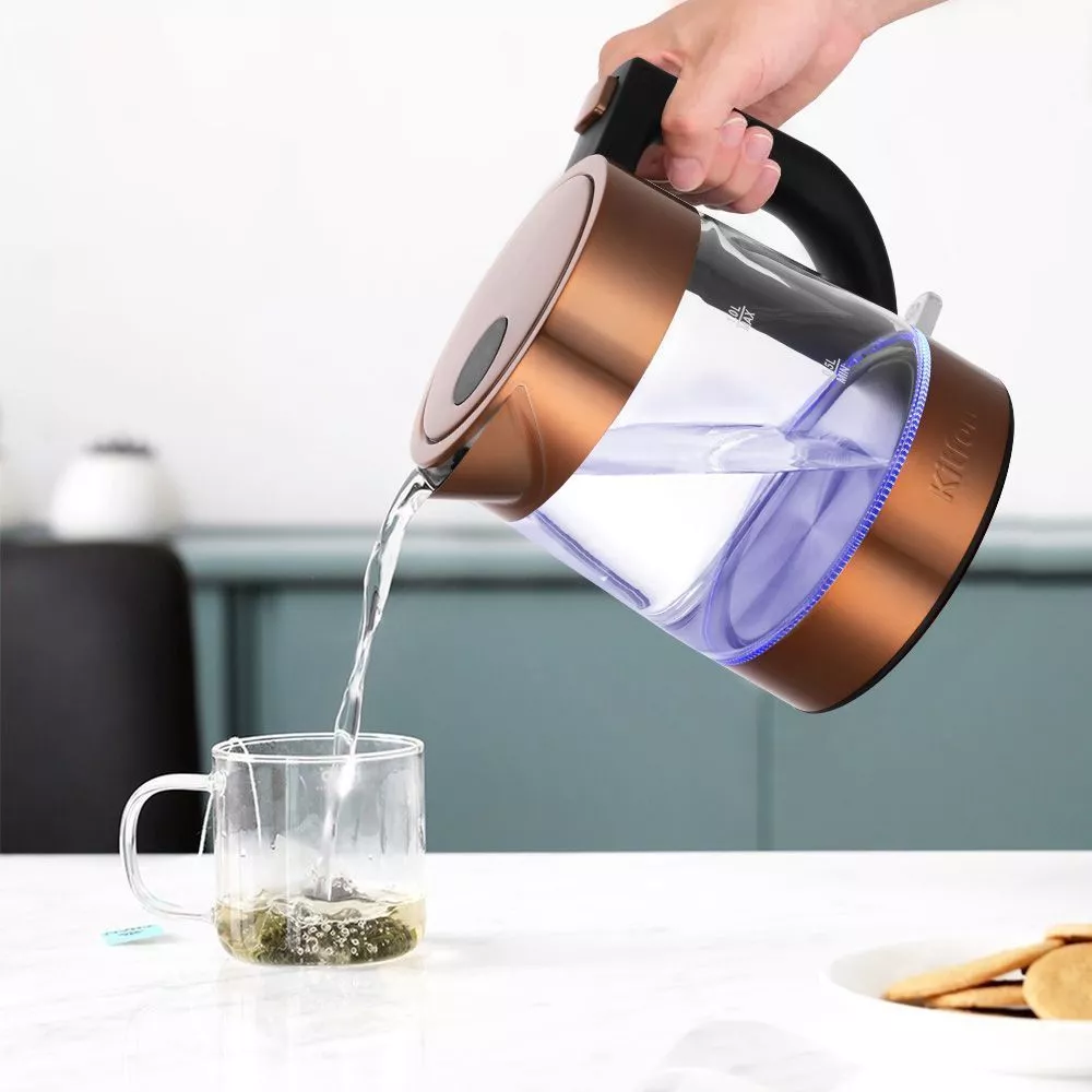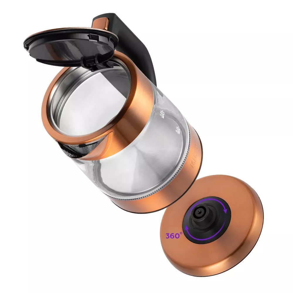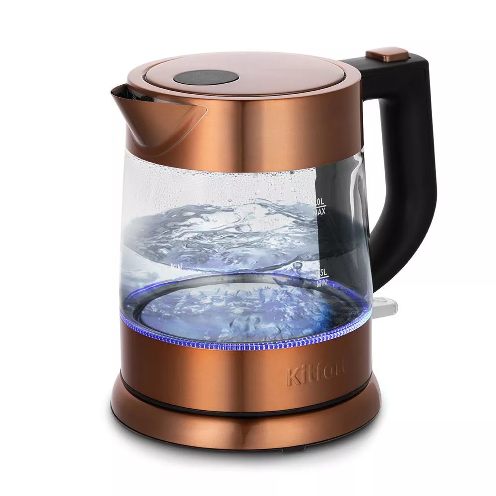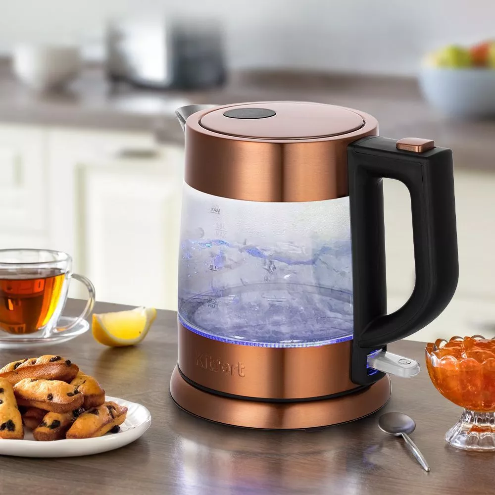 Электрический чайник Kitfort KT-6659 предназначен для быстрого кипячения воды дома, в офисе или на даче. Этот стильный чайник медного цвета представляет собой идеальное сочетание стекла, пластика и нержавеющей стали. Его мощность 2200 Вт.