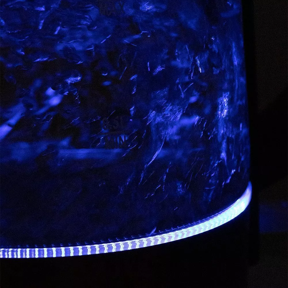 Мощности чайника достаточно для того, чтобы быстро вскипятить полный объём чайника. При включении синяя подсветка по периметру дна сигнализирует о его рабочем состоянии, а также красиво подсвечивает воду.