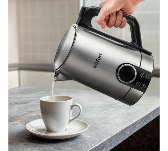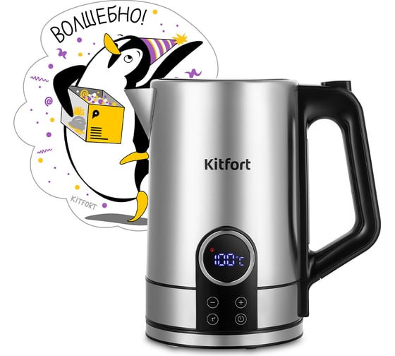 Электрический чайник с электронным терморегулятором Kitfort КТ-6648 может не только вскипятить воду, но и нагреть ее до температуры 40,50,60,70,80,90 или 95 °С, что очень удобно при заваривании различных сортов чая. Чайник также оснащен функцией поддержания температуры в течение 2 часов. Температура воды контролируется встроенным в дно чайника термодатчиком.