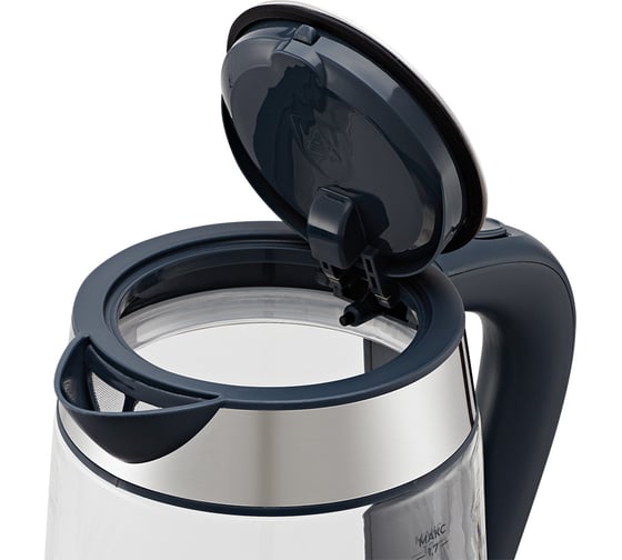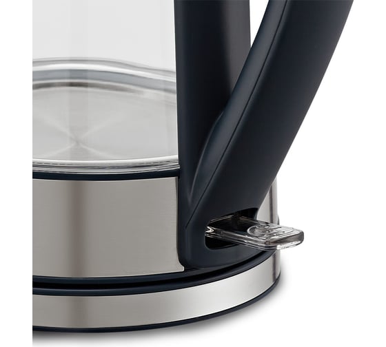 Корпус чайника выполнен из сочетания стекла, нержавеющей стали и пластика, а крышка — из сочетания нержавеющей стали и пластика. Мерная шкала находится на внешней стороне корпуса. Ручка чайника пластиковая, не нагревается и удобно лежит в руке.