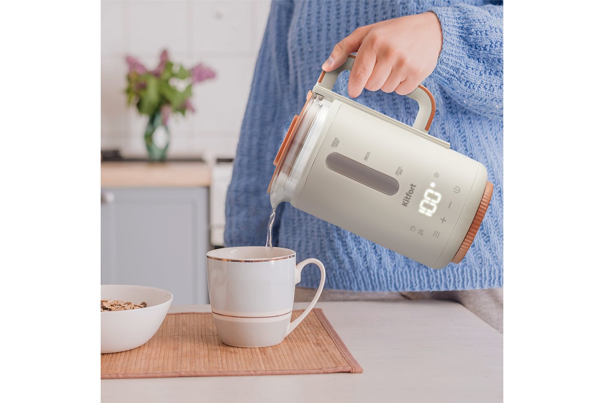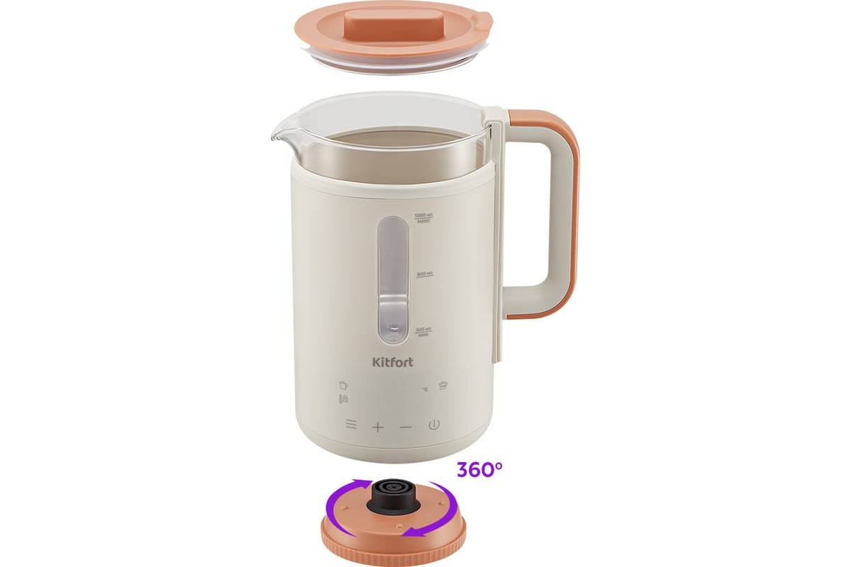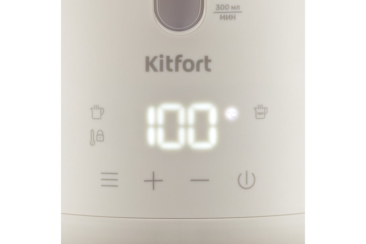 Электрический чайник с электронным терморегулятором Kitfort КТ-6195 может не только вскипятить воду, но и нагреть ее до температур: от 35 до 95 °С, что очень удобно при заваривании различных сортов чая. Чайник также оснащен функцией поддержания температуры до 48 часов и функцией дехлорирования. Температура воды контролируется встроенным в дно чайника термодатчиком.