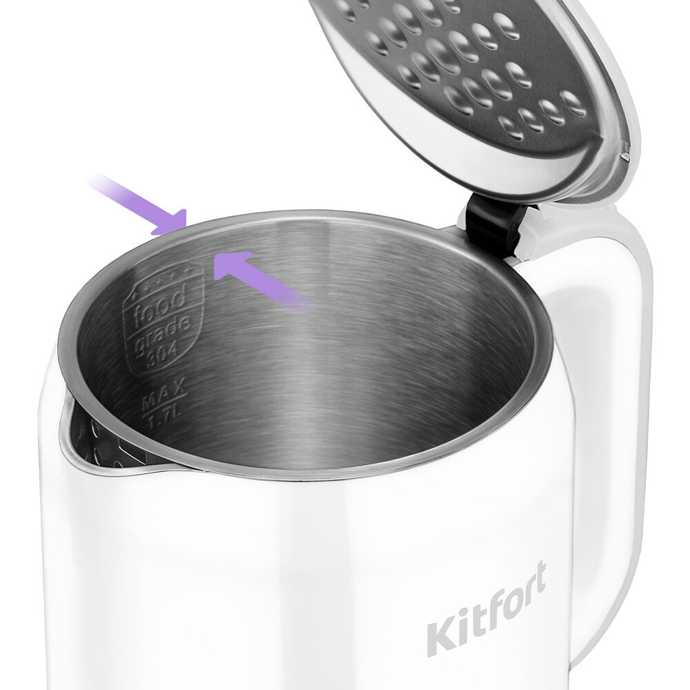 Чайник Kitfort КТ-6699 предназначен для кипячения воды дома, в офисе, на даче. Чайник оснащён функцией поддержания температуры в течение 2 часов. Температура воды контролируется встроенным термодатчиком.