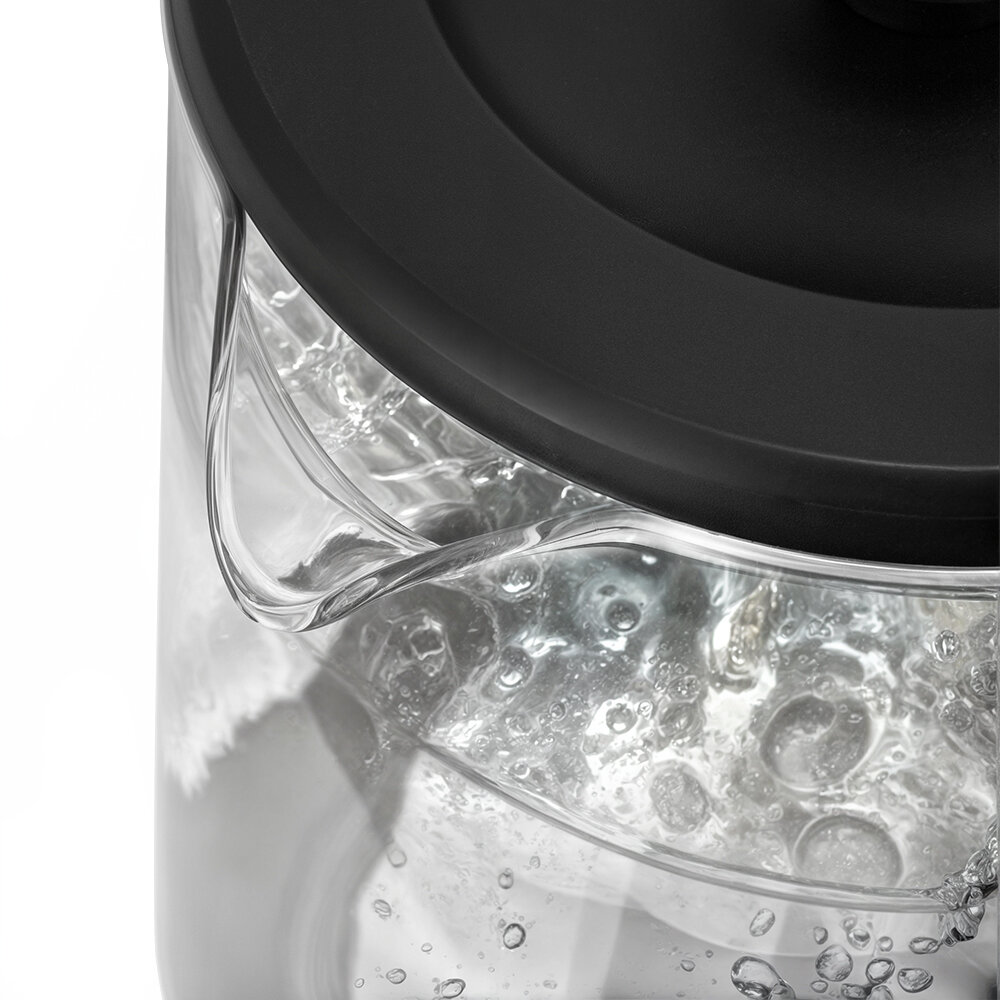 Корпус чайника выполнен из стекла, а крышка — из нержавеющей стали и пластика. При включении чайника на внутренней стороне корпуса под ручкой загорается подсветка, которая является индикатором работы.