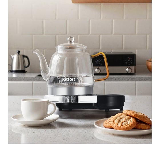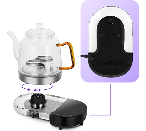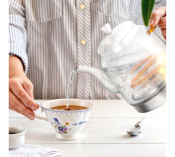 Электрический чайник с электронным терморегулятором Kitfort КТ-6723 может не только вскипятить воду, но и нагреть ее до температур 80 и 90 °С. Чайник также оснащен функцией поддержания температуры в течение 20 минут. Температура воды контролируется встроенным в дно чайника термодатчиком.