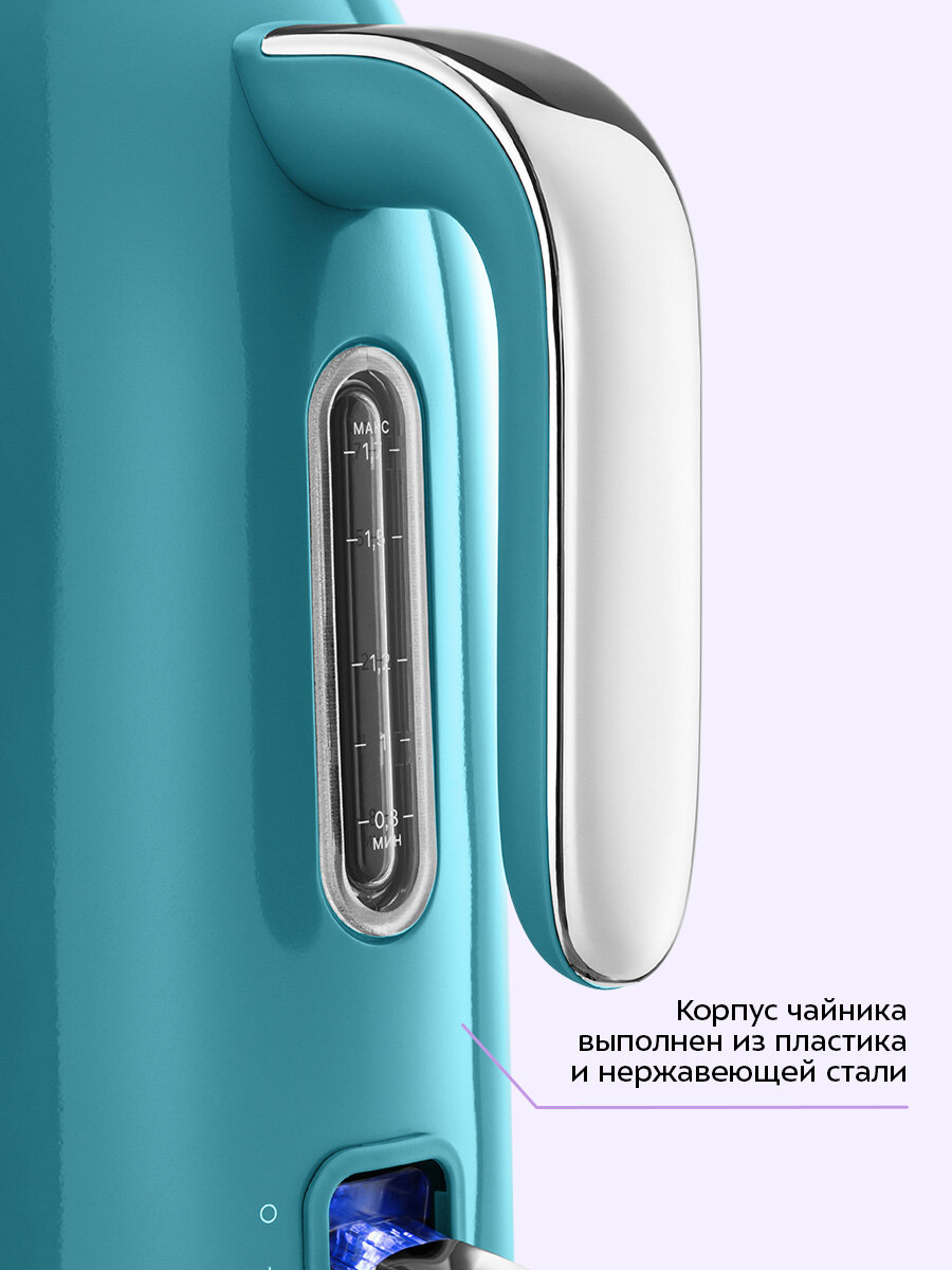 Чайник оснащён контроллером Strix - № 1 среди поставщиков компонентов для электрочайников. Он устраняет риски короткого замыкания и возгорания прибора. Обеспечивает защиту при закипании, при включении чайника без воды.