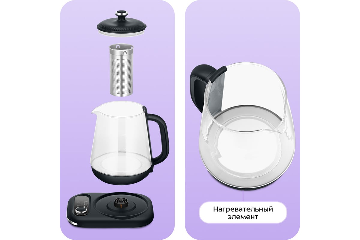 Электрический чайник КТ-6756 не только кипятит воду, но и заменяет несколько приборов для приготовления напитков и блюд. Он поддерживает температуру воды от 45 до 90 градусов, что идеально для заваривания чая разных сортов.