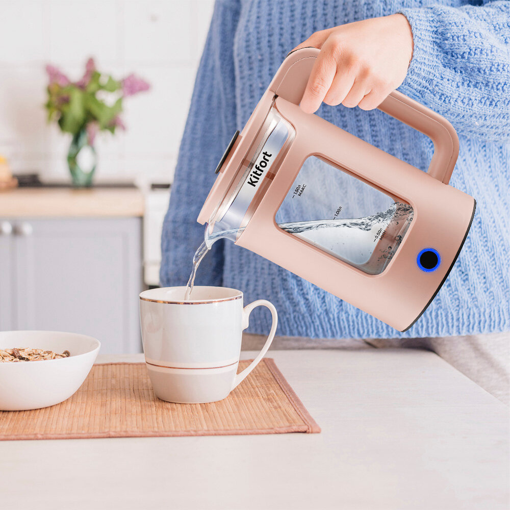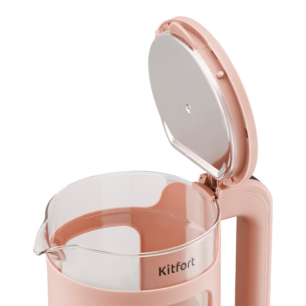 Электрический чайник КТ-6781 предназначен для кипячения воды дома, в офисе, на даче. Корпус чайника выполнен из стекла и пластика, а крышка — из нержавеющей стали и пластика. Мерная шкала нанесена на стеклянную часть корпуса.