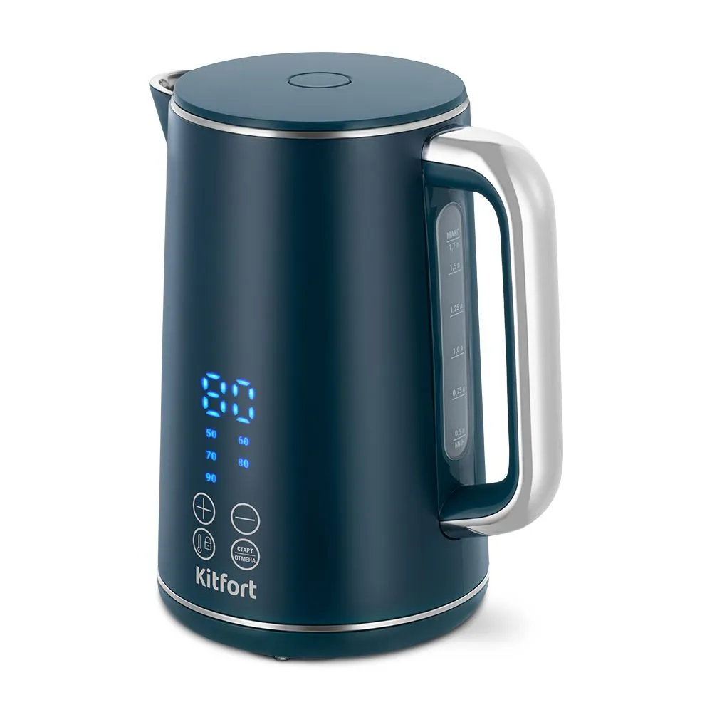 Стильный яркий чайник Kitfort КТ-6784 предназначен для кипячения воды дома, в офисе, на даче. Ёмкость чайника 1,7 литра: этого хватит, чтобы приготовить горячие напитки на большую семью. Полный чайник закипает за 5 минут.