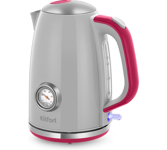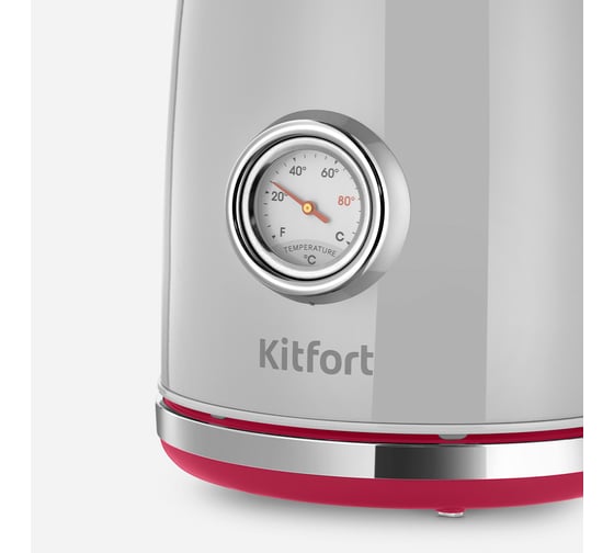 На корпусе чайника установлен термометр, который показывает температуру воды в чайнике. Это удобно, если вы готовите напитки, для которых требуется определённая температура воды. Принцип работы термометра термомеханический.