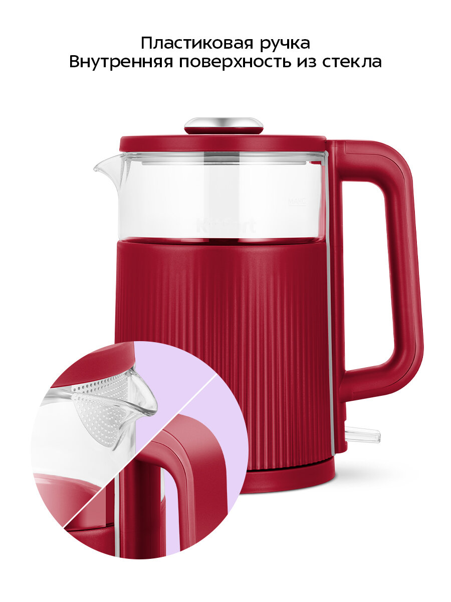 Чайник КТ-8716 станет настоящим украшением вашей кухни! Чайник автоматически отключается при закипании, имеет защиту от перегрева и от включения без воды. В носике чайника расположен фильтр от накипи.