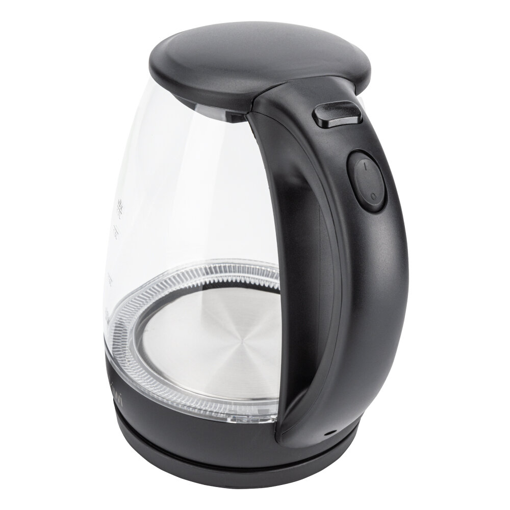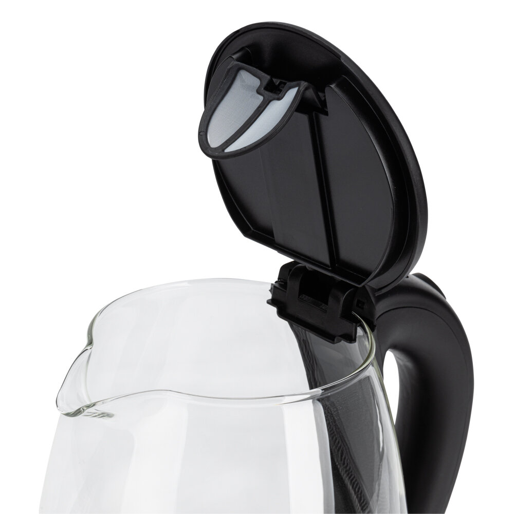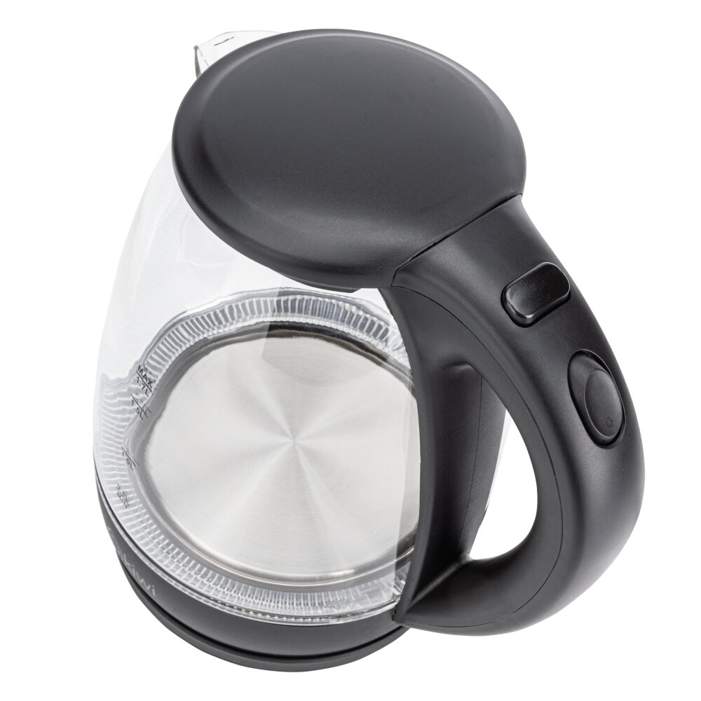 Эта модель также обладает мощностью в 2200 Вт для быстрого кипячения воды и выполнена из термостойкого стекла "QuartzGuard Glass", которое дополнено красивой синей подсветкой.Чайник защищен от перегрева и может автоматически отключаться при достижении 100°C, что гарантирует безопасность во время эксплуатации. Компактное хранение обеспечивается благодаря отсеку для сматывания шнура, а использование упрощает сетчатый фильтр и механизм легкого открытия крышки.