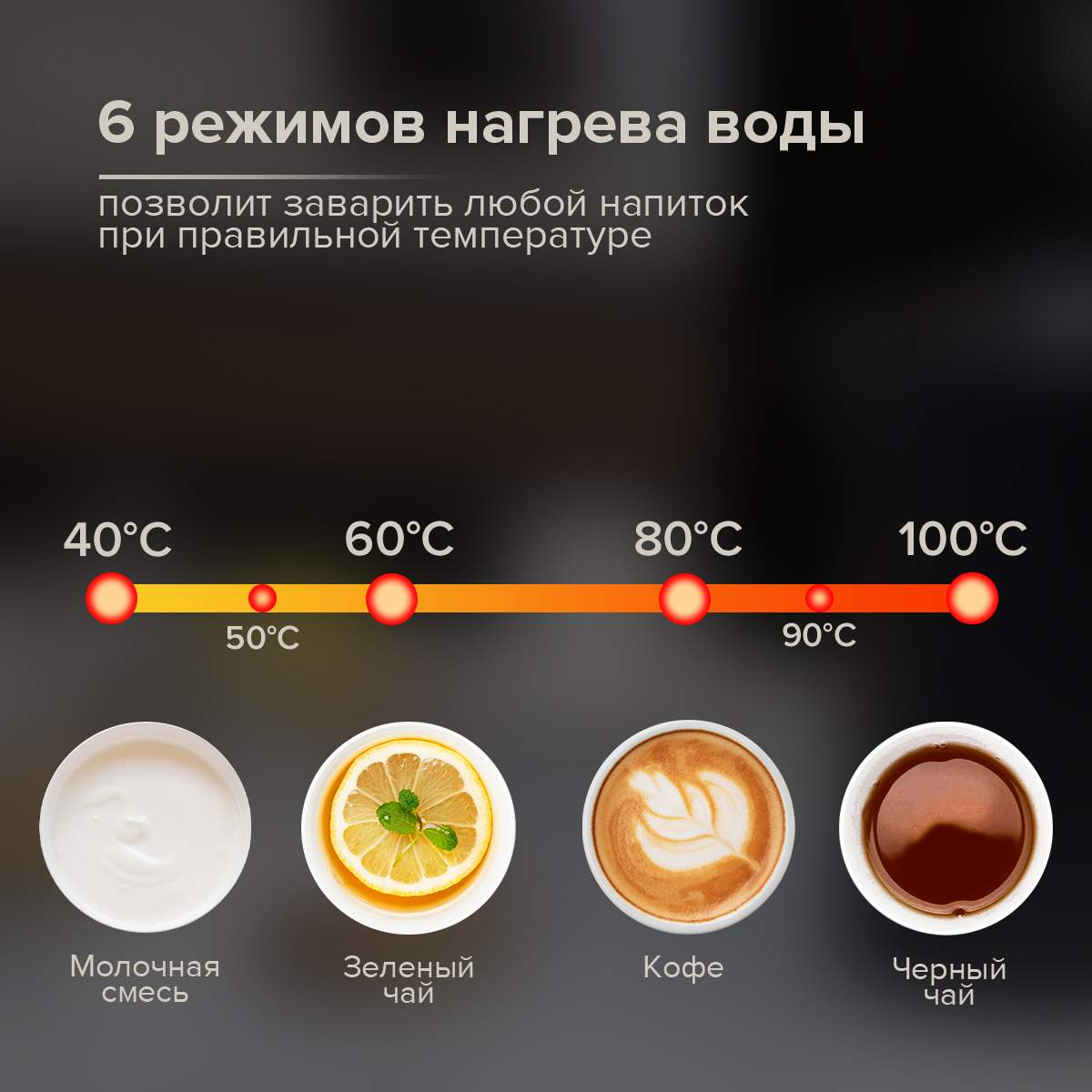 Особенности устройств для нагрева воды: Вращение подставки на 360°, Выбор температуры нагрева воды, Двухслойный корпус