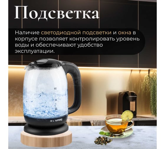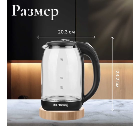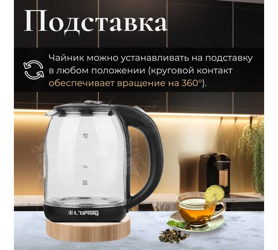 Электрочайник L`Ornay LA-4622 предназначен для использования в офисе или дома.