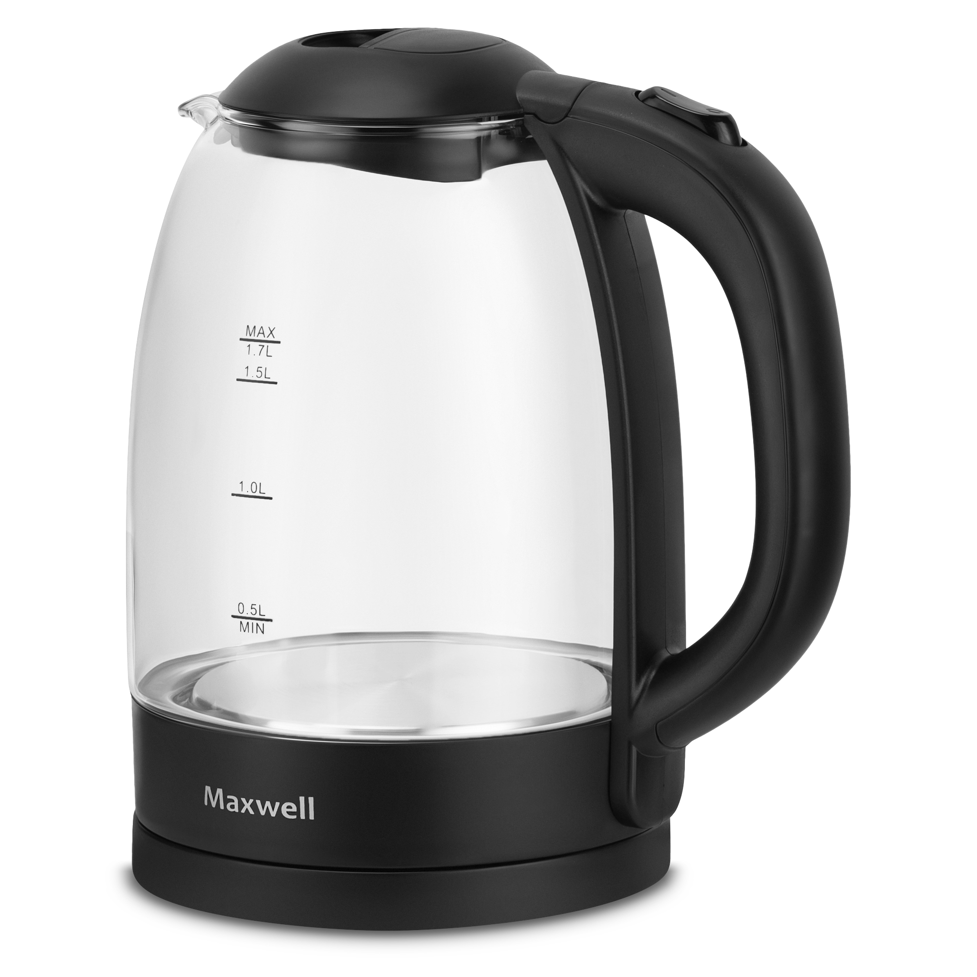 Кипятить воду и любоваться этим процессом позволит вам чайник MAXWELL MW-1091 объемом 1,7 л. Максимальная мощность прибора — 2200 Вт. Корпус чайника, изготовленный из экологического термостойкого стекла, имеет удобную шкалу уровня воды. Крышка устройства открывается механически. Нагрев воды осуществляется с помощью скрытого элемента, расположенного в дне прибора (при отсутствии ее в чайнике он отключается автоматически).