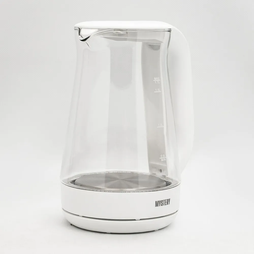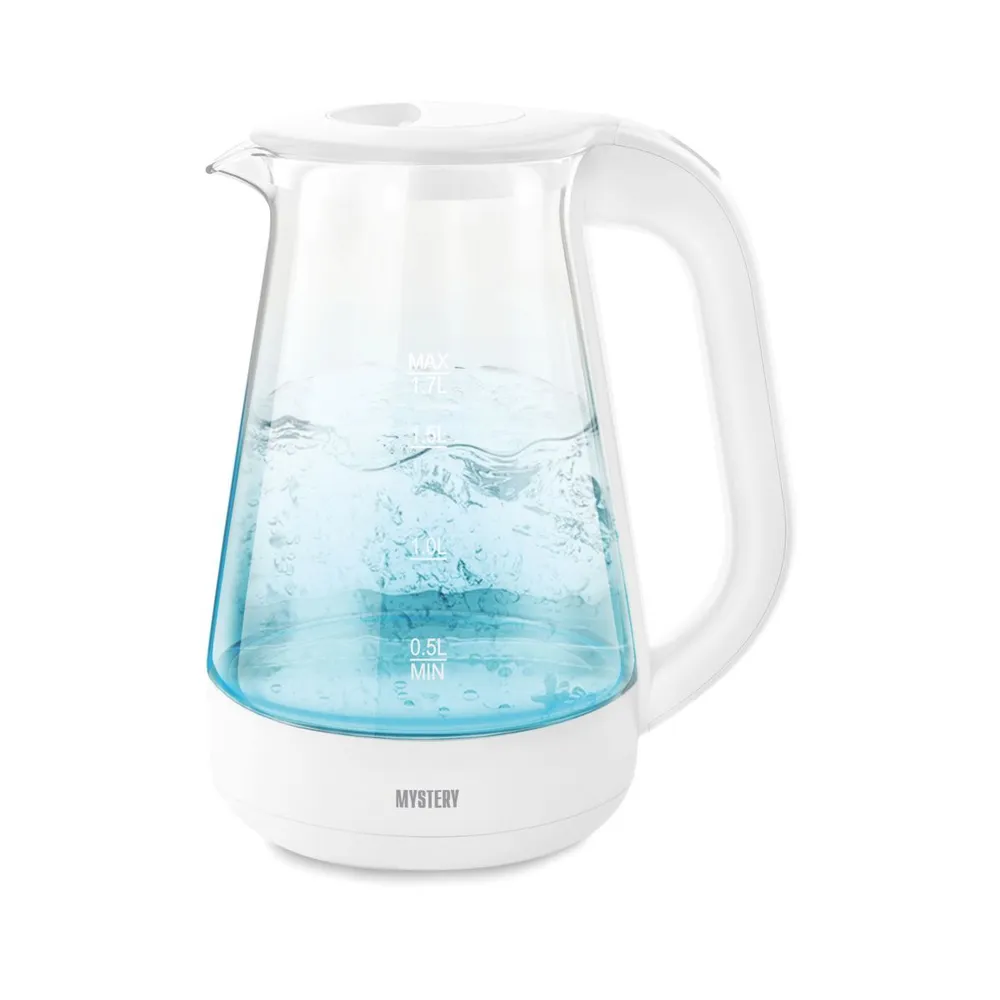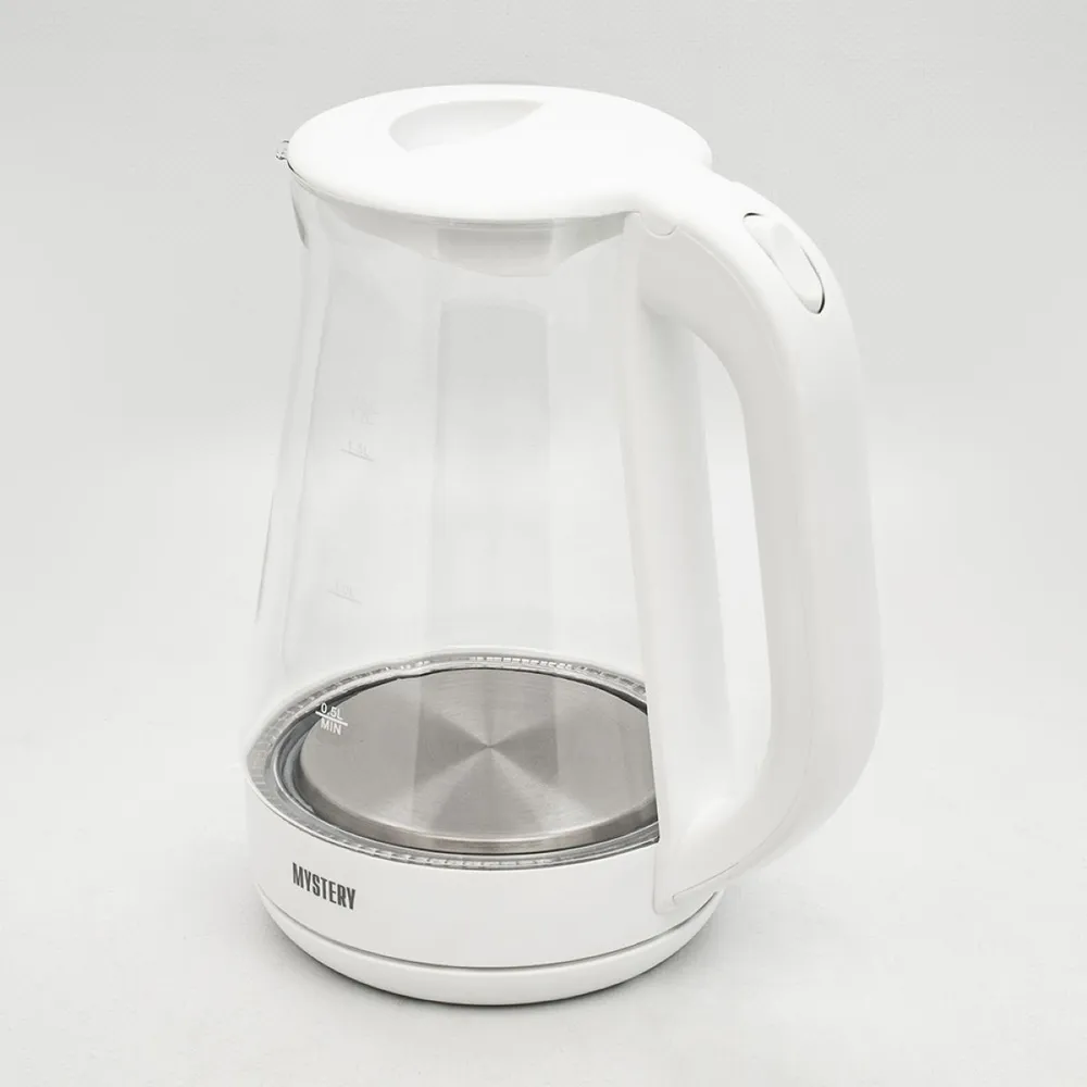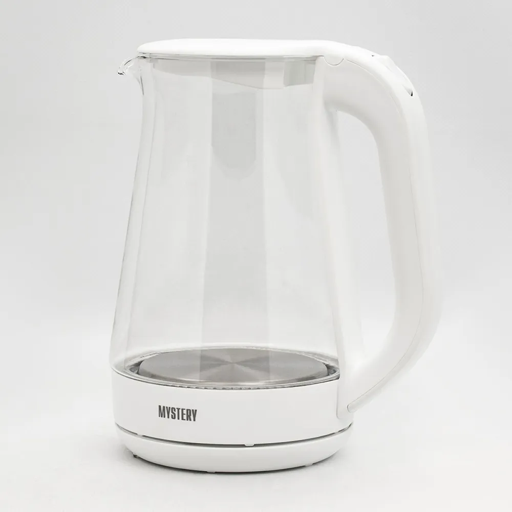 Электрический чайник Mystery MEK-1652 имеет утонченный внешний вид и сможет прекрасно вписаться в интерьер современной кухни. Приятная LED подсветка стеклянного резервуара произведет успокаивающее действие. Чайник стеклянный имеет такие функции защиты, как защита от включения без воды, а также автоматическое отключение при закипании. Объем чайника стандартный - 1,7 литра. Мощность 2000 Ватт, которые позволят уже через пару минут получить литр кипяченой воды.