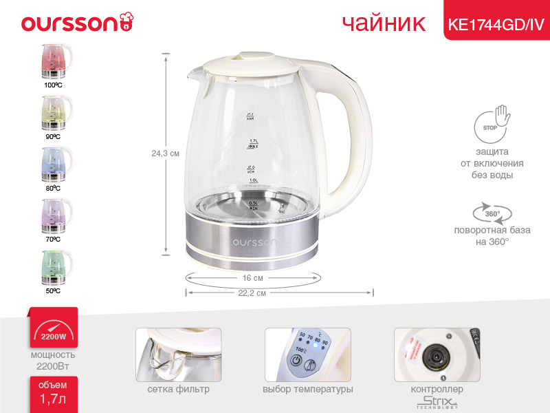 Электрочайник OURSSON KE1744GD/IV