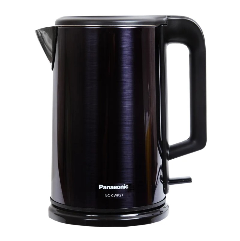 Электрический чайник Panasonic NC-CWK21 – электрический чайник с функцией термоса, который не только быстро кипятит воду, но и сохраняет ее горячей спустя некоторое время после закипания. Корпус с двойными стенками не дает чайнику Panasonic NC-CWK21 слишком сильно нагреваться с внешней стороны, даже если внутри кипяток. Поэтому вы не обожжете руку при случайном прикосновении к нагретому прибору. У электрического чайника Panasonic NC-CWK21 цельнометаллическая внутренняя колба: на ней нет швов и стыков. Колба сделана из пищевой нержавеющей стали, устойчивой к высоким температурам, появлению коррозии, химическим воздействиям. Материал легко очищается от загрязнений, не выделяет вредных соединений при нагреве. У чайника широкая горловина, поэтому наливать воду в него очень удобно. Чайник можно легко поворачивать на 360°: так горячий пар из носика не попадет на обои, технику или мебель. Благодаря световой индикации вы сможете увидеть, что чайник работает сразу, как только включили его. У чайника вместительный объем – 1,5 л. Этого достаточно, чтобы за один раз вскипятить воду для наполнения 5-6 кружек. Мощность чайника -1800 Вт