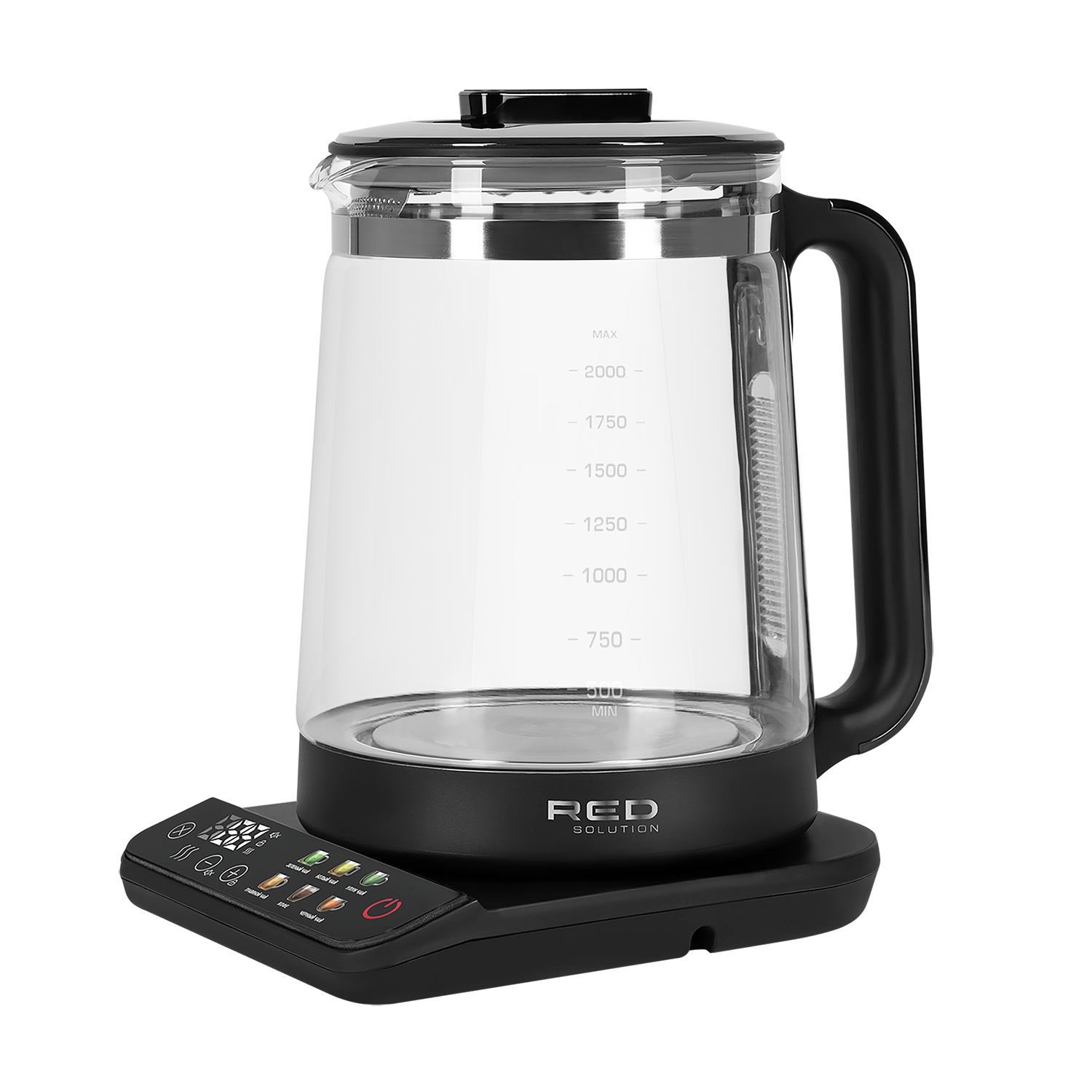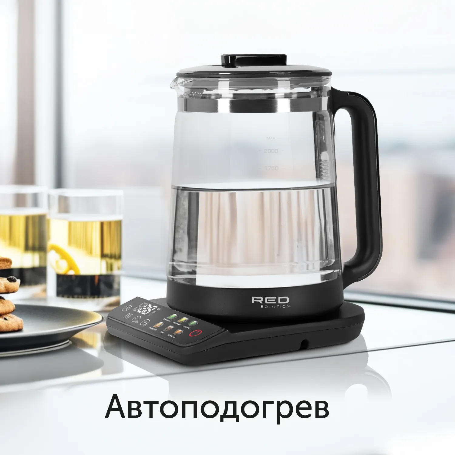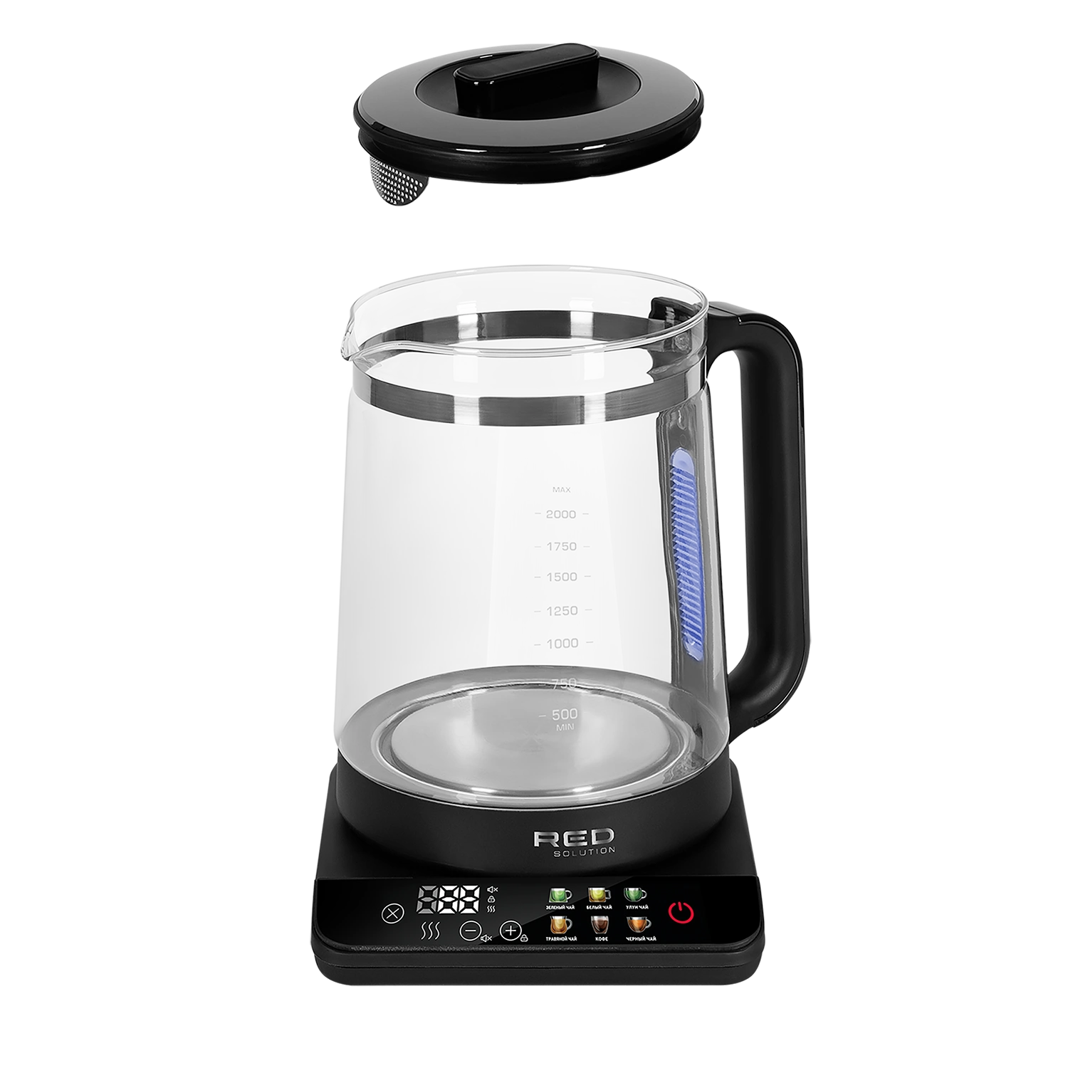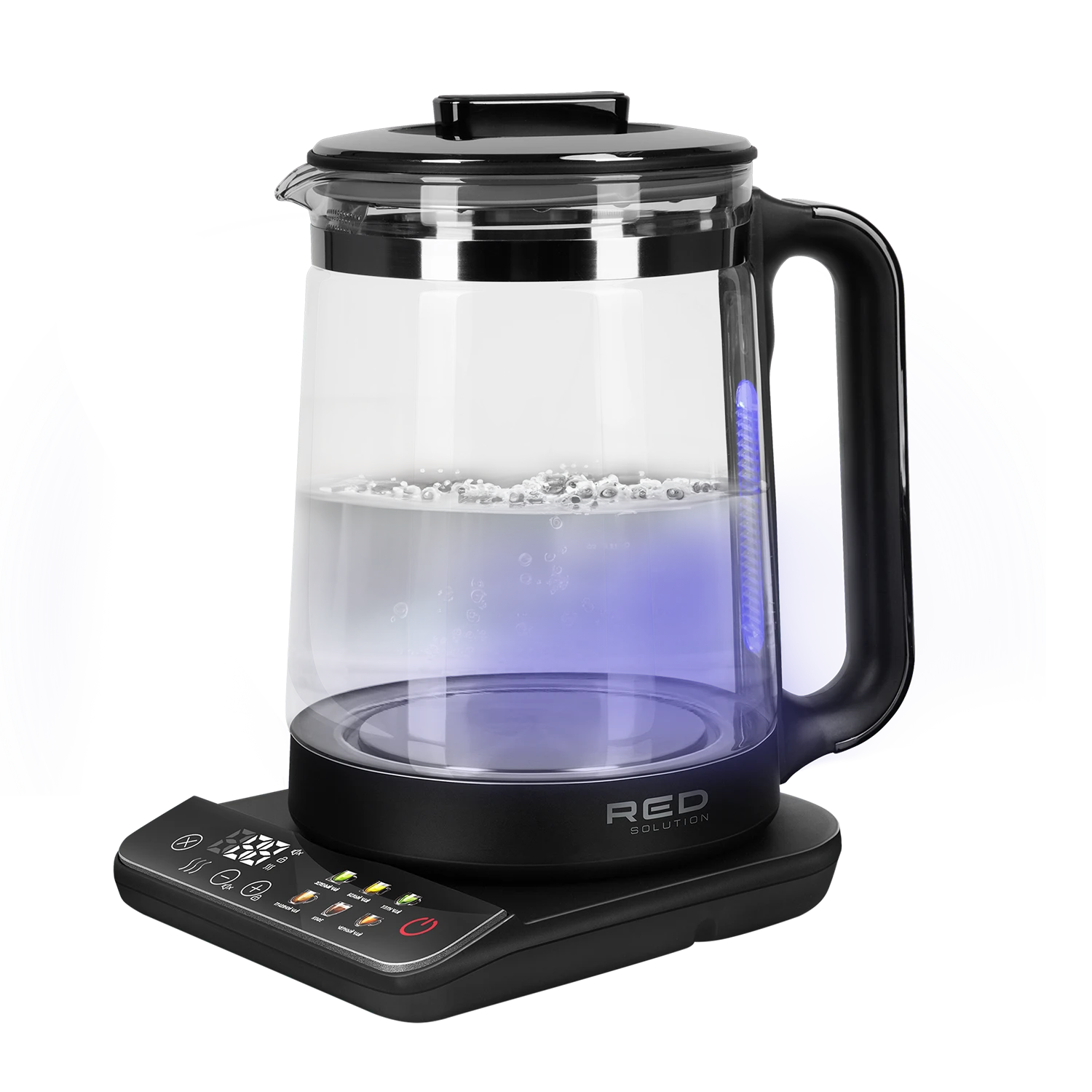 RED solution KG1330D — стильный чайник с сенсорным управлением. Эта модель особенно понравится тем, кто любит точность и подробно следует рецептуре — нагрев регулируется с шагом в 1 °С, а для самых популярных горячих напитков предусмотрены 6 автоматических режимов. Фирменная контактная группа Strix®, колба из закаленного стекла и защита от включения без воды гарантируют безопасность и долгую работу устройства.