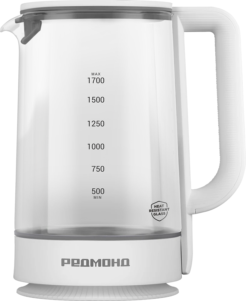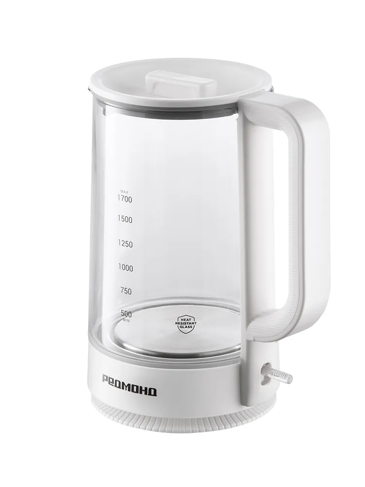Колба чайника изготовлена из термостойкого стекла. Материал не выделяет вредных примесей, поэтому пользоваться устройством безопасно. Стекло не влияет на вкус воды — напитки получатся идеальными, без запаха пластика.