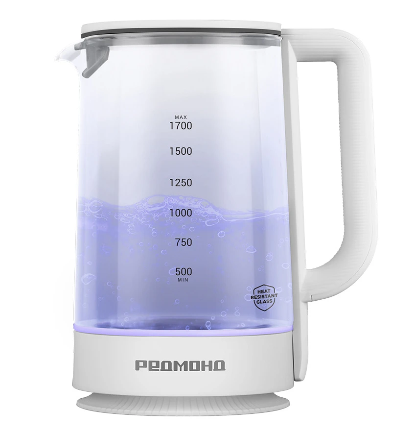 Чайник РЕДМОНД KG272 объемом 1,7 литра прослужит вам долго благодаря контактной группе Strix®. Его колба изготовлена из термостойкого стекла, а по контуру съемной крышки расположен резиновый уплотнитель для более мягкого открытия. Подсветка чайника с парящим эффектом придает корпусу легкость, позволяя вписать его в любой интерьер.