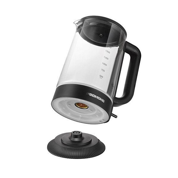 Колба чайника изготовлена из термостойкого стекла. Материал не выделяет вредных примесей, поэтому пользоваться устройством безопасно. Стекло не влияет на вкус воды — напитки получатся идеальными, без запаха пластика