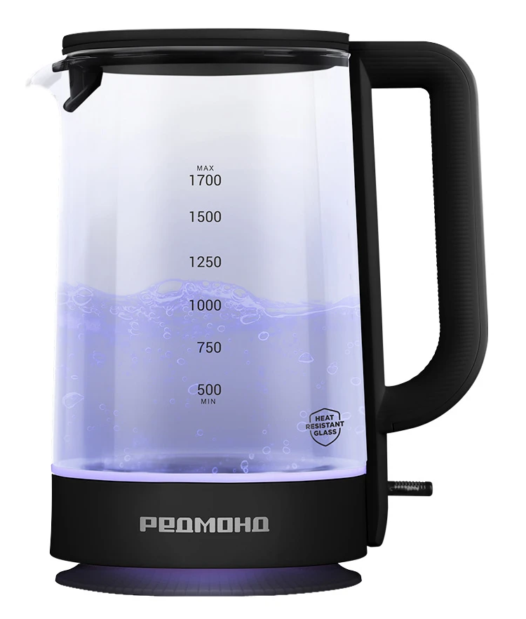 Чайник РЕДМОНД KG272 объемом 1,7 литра прослужит вам долго благодаря контактной группе Strix®. Его колба изготовлена из термостойкого стекла, а по контуру съемной крышки расположен резиновый уплотнитель для более мягкого открытия. Подсветка чайника с парящим эффектом придает корпусу легкость, позволяя вписать его в любой интерьер