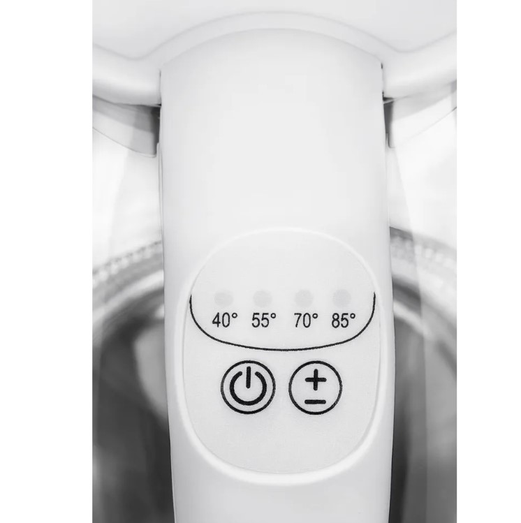 • у чайника есть 5 автоматических режимов нагрева: 40°, 55°, 70°, 85°, 100°С. Чтобы выбрать нужный режим, нажмите кнопку на панели управления;