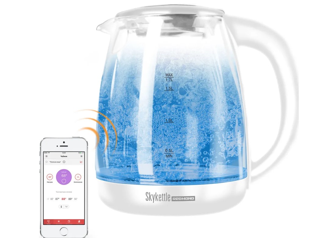 • в чайнике можно настраивать температуру нагрева вручную с точностью до 1°С – это можно делать дистанционно, с помощью приложения Ready for Sky, установленного на смартфон.