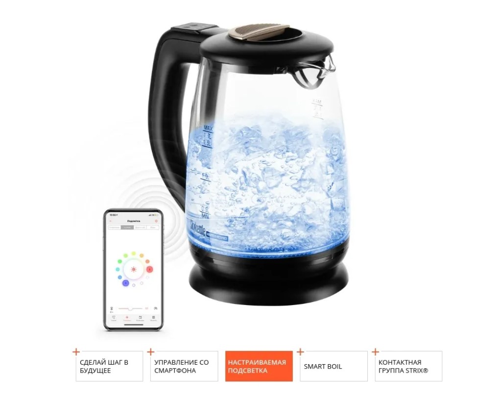 Управление со смартфонаЧтобы управлять чайником на расстоянии, установите на смартфон бесплатное приложение Ready for Sky – через него вы получите доступ к расширенному функционалу устройства*. Например, со смартфона вы сможете: